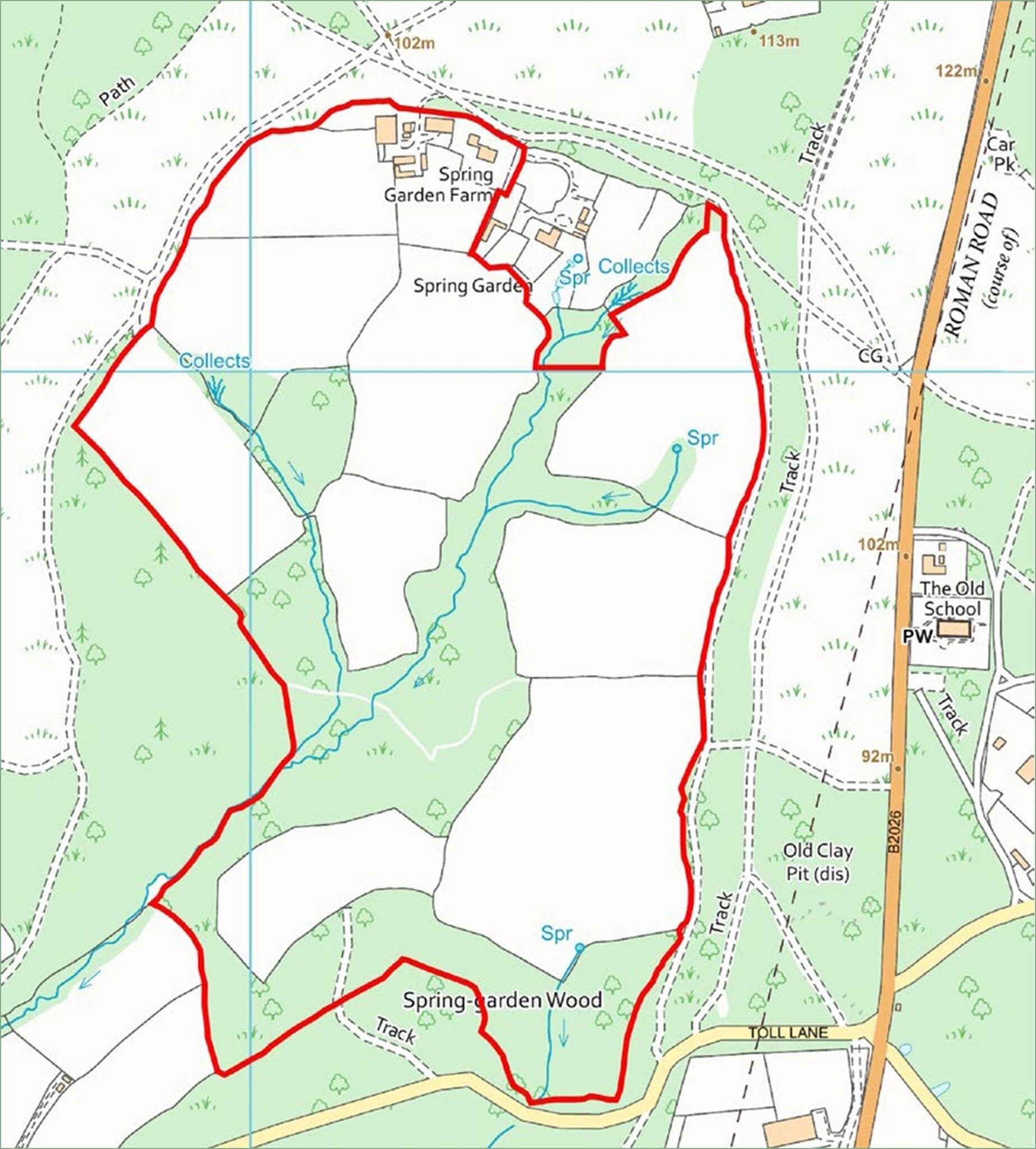 The farmland lies to the south of Spring Garden farmhouse, the farmyard and buildings and comprises a single block of pasture and woodland extending in all to some 77 acres which is divided approximately as follows: