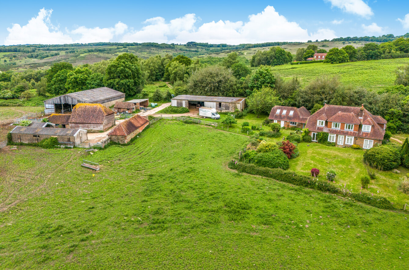 Located in an enviable location just outside the hamlet of Fairwarp, on the southern edge of the Ashdown Forest, Spring Garden Farm offers a detached farmhouse (subject to an Agricultural Occupancy Condition) with an attached annexe, an extensive range ofmodern and traditional farm buildings and a ring fenced block of farmland and woodland, with far reaching views to the South Downs National Park, extending in all to some 77 acres.
