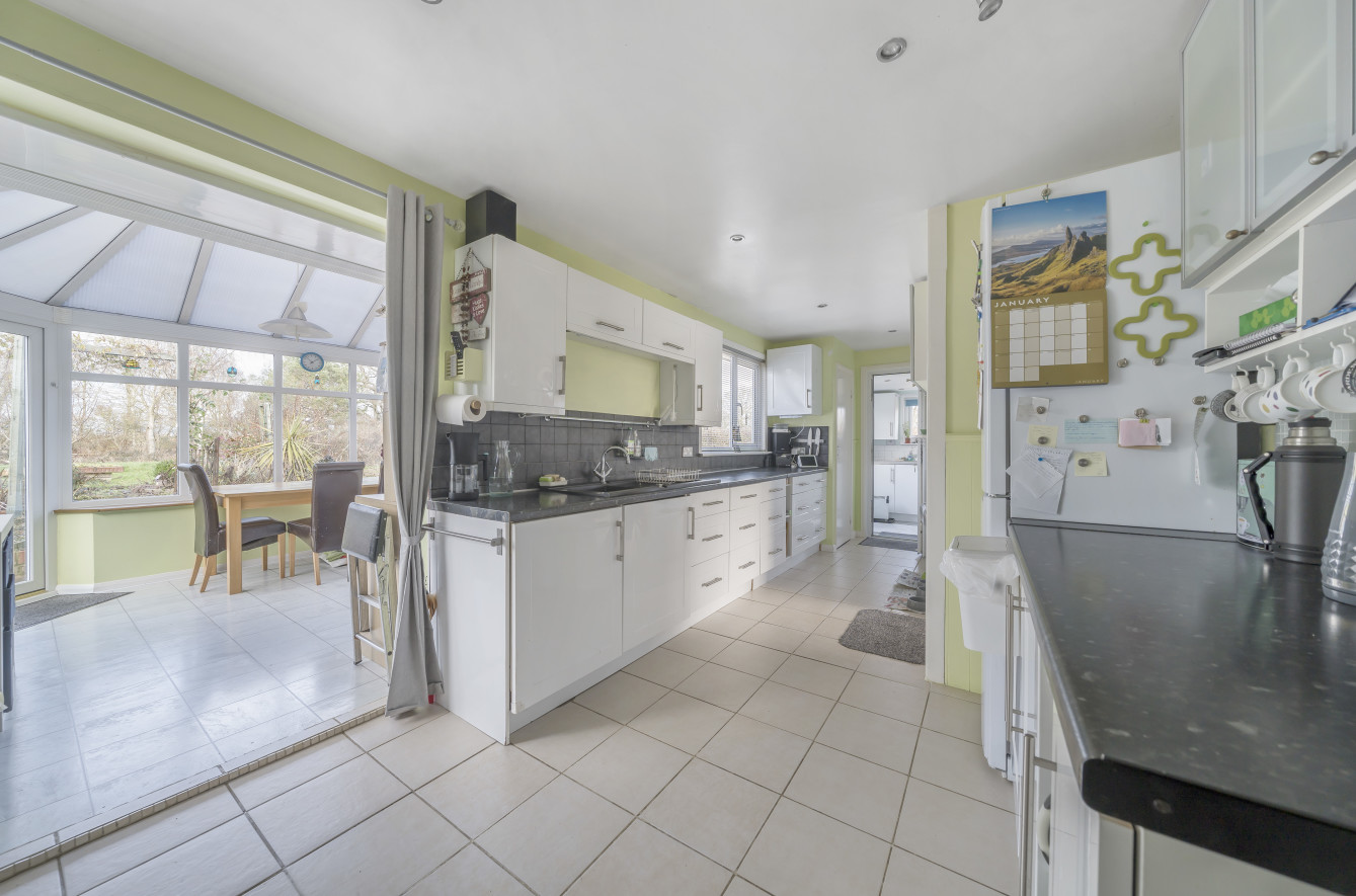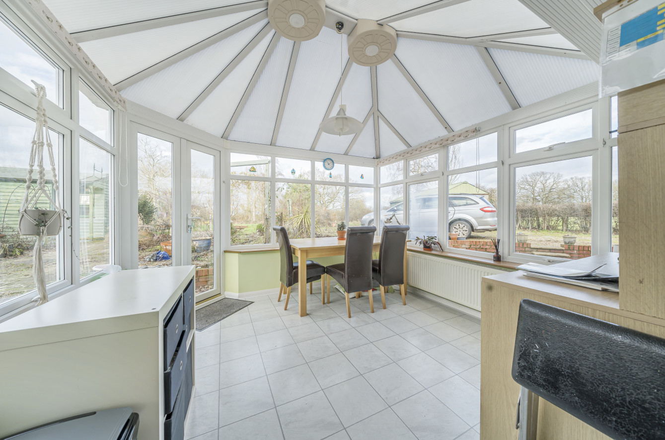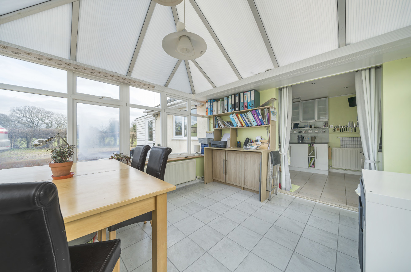 Farm cottage is an individual, detached bungalow of concrete sectional construction, set with replacement UPVC double glazed windows beneath a pitched interlocking tiled roof. The bungalow is presented in good decorative order with features including the sitting room with brick fireplace housing a wood-burning stove, fitted kitchen with four burner electric hob, integrated eyelevel fan assisted electric oven, grill and filter hood over, space and plumbing for dishwasher, space for an upright fridge/freezer, tiled floor and a boiler cupboard housing floor standing Worcester oil fired boiler providing domestic hot water and central heating. An open access to the conservatory, comprising UPVC panels and windows set on a dwarf brick wall with tiled floor. Useful utility room and cloakroom. Access from the inner hall to bedrooms one and two, bedroom one with double aspect enjoying outlook across fields with walk-in dressing room, which was formerly bedroom three. The doorway creating the independent access to the dressing room/former bedroom three is temporally boarded.