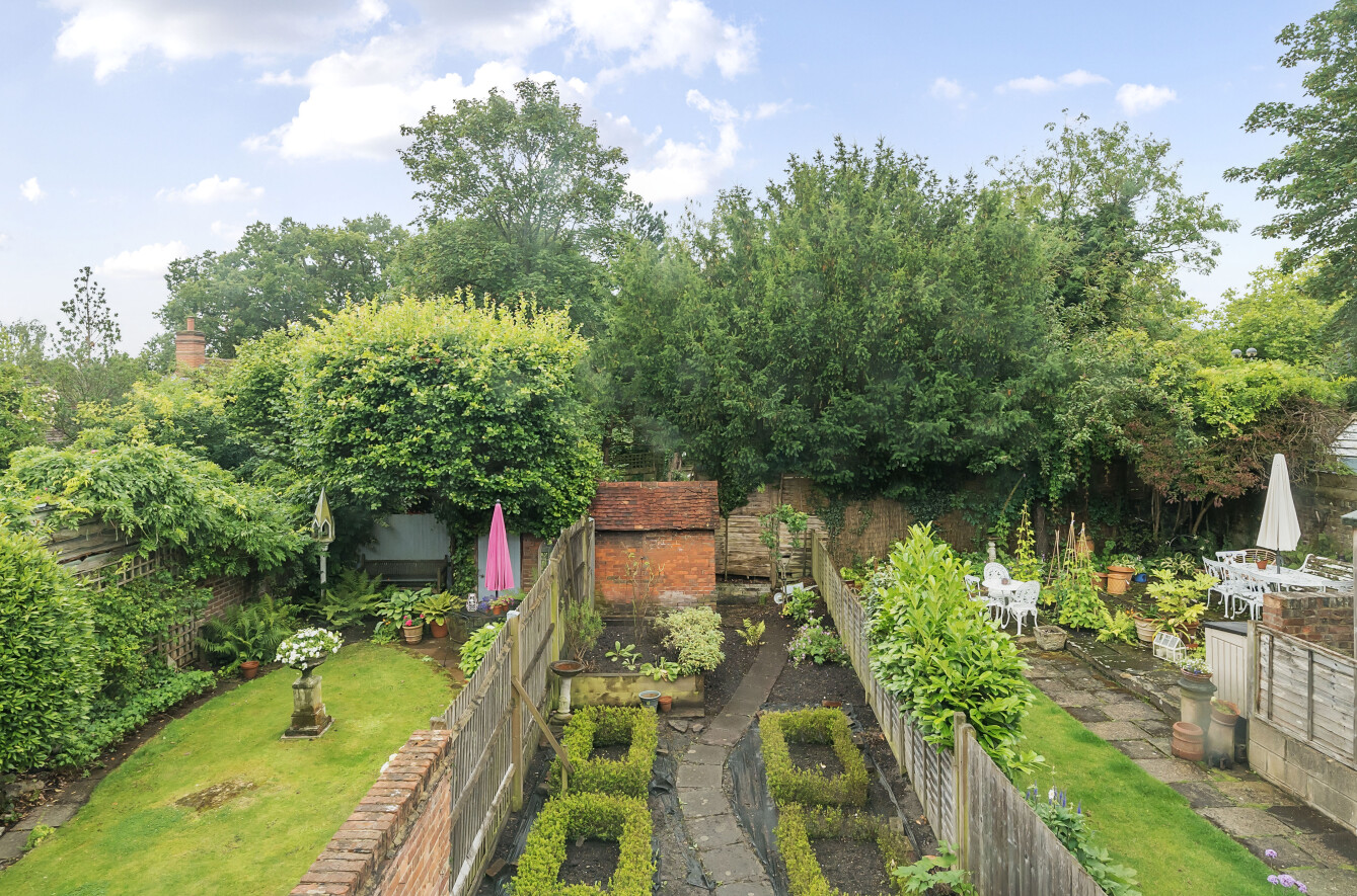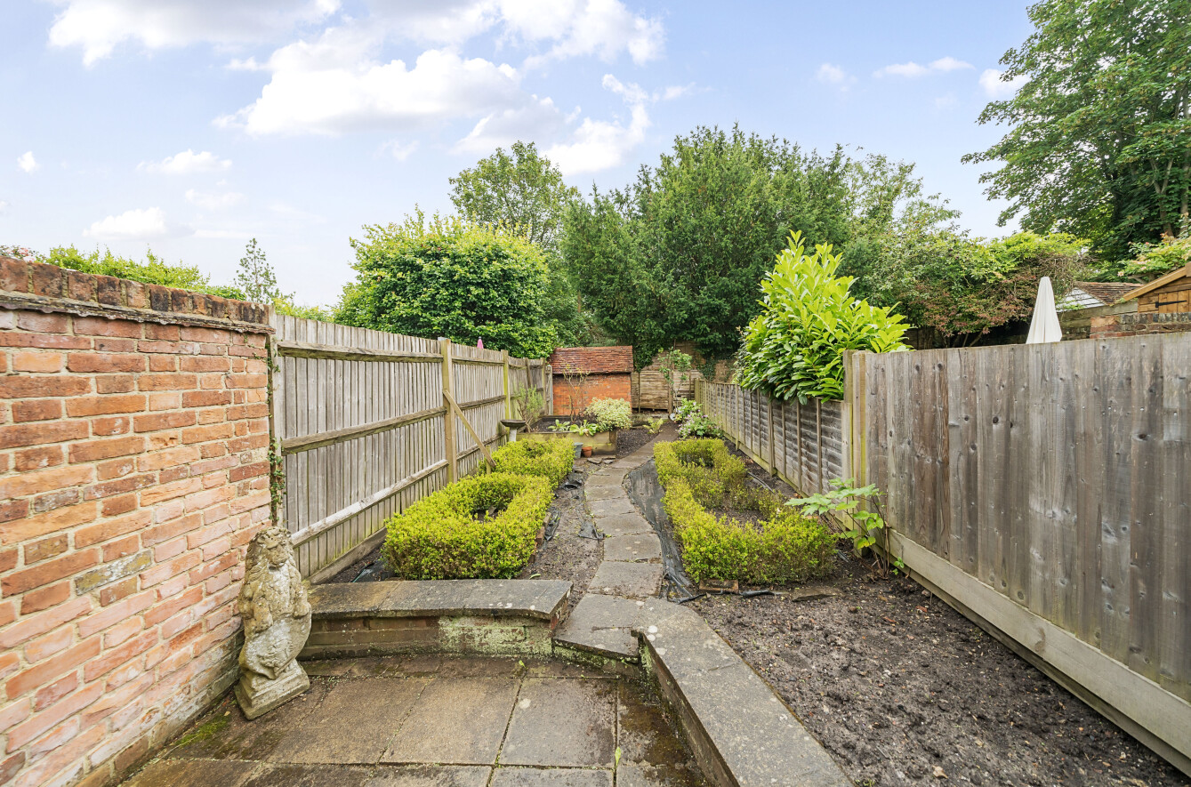 Outside, there is a pretty, enclosed rear garden with paved terrace area complemented by lovely, raised flower and shrub beds. There is a handy brick built store room and to the side there is gated access with a right of access across adjacent gardens to access the street.