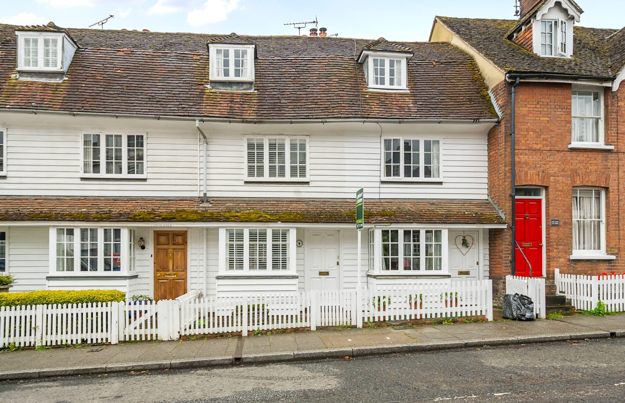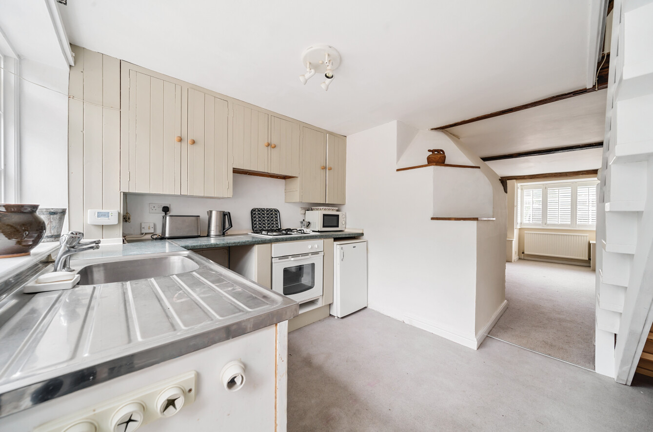 Sat behind a white picket fence is this charming Grade II Listed, white weather boarded town house, offering 792 sq ft of accommodation set over 3 floors and retaining a wealth of stunning period features, including exposed beams and wall timbers, original wooden doors and inglenook fireplace, all occupying a high street location in the popular town centre. Cranbrook School catchment area. Chain Free.