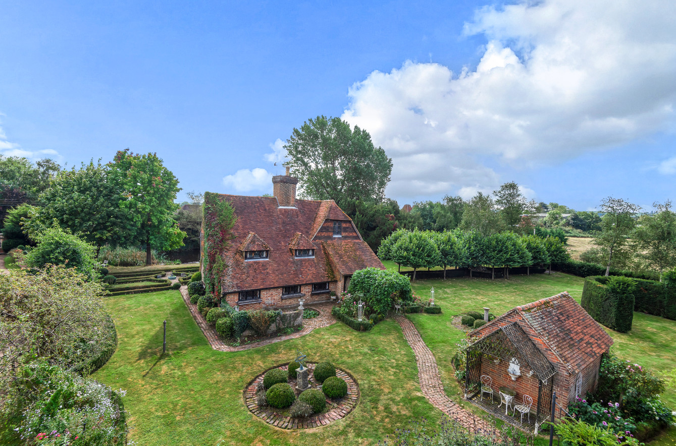 DIRECTIONS: From our offices in Paddock Wood, proceed along Commercial Road down towards the railway station, at the T junction turn right into Church Road, continue on and at the next T junction turn left into Queen Street. Then take the next right hand turning into Pearson’s Green Road. Continue on taking the left-hand turning into Willow lane, set off the right-hand bend. Continue along this single track lane over the small bridge where upon the brick pillared entrance to Great Old Hay will be clearly seen on the right.