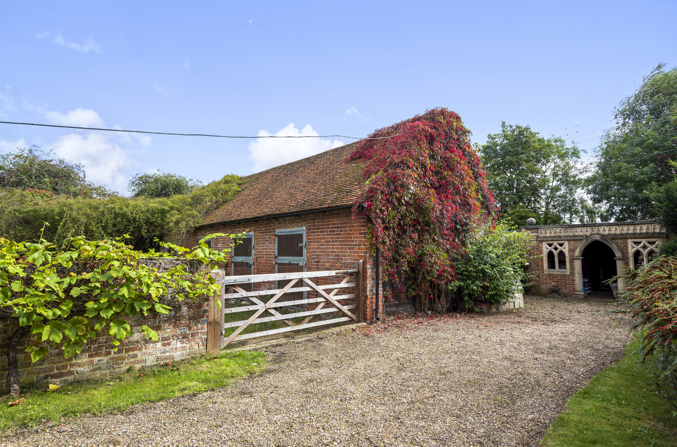 The barn: a brick built detached building, beneath a pitched tiled roof, divided into four loose boxes with stable doors opening out to a fenced grassed yard. Accessed from the central gravelled area including a brick-built folly.