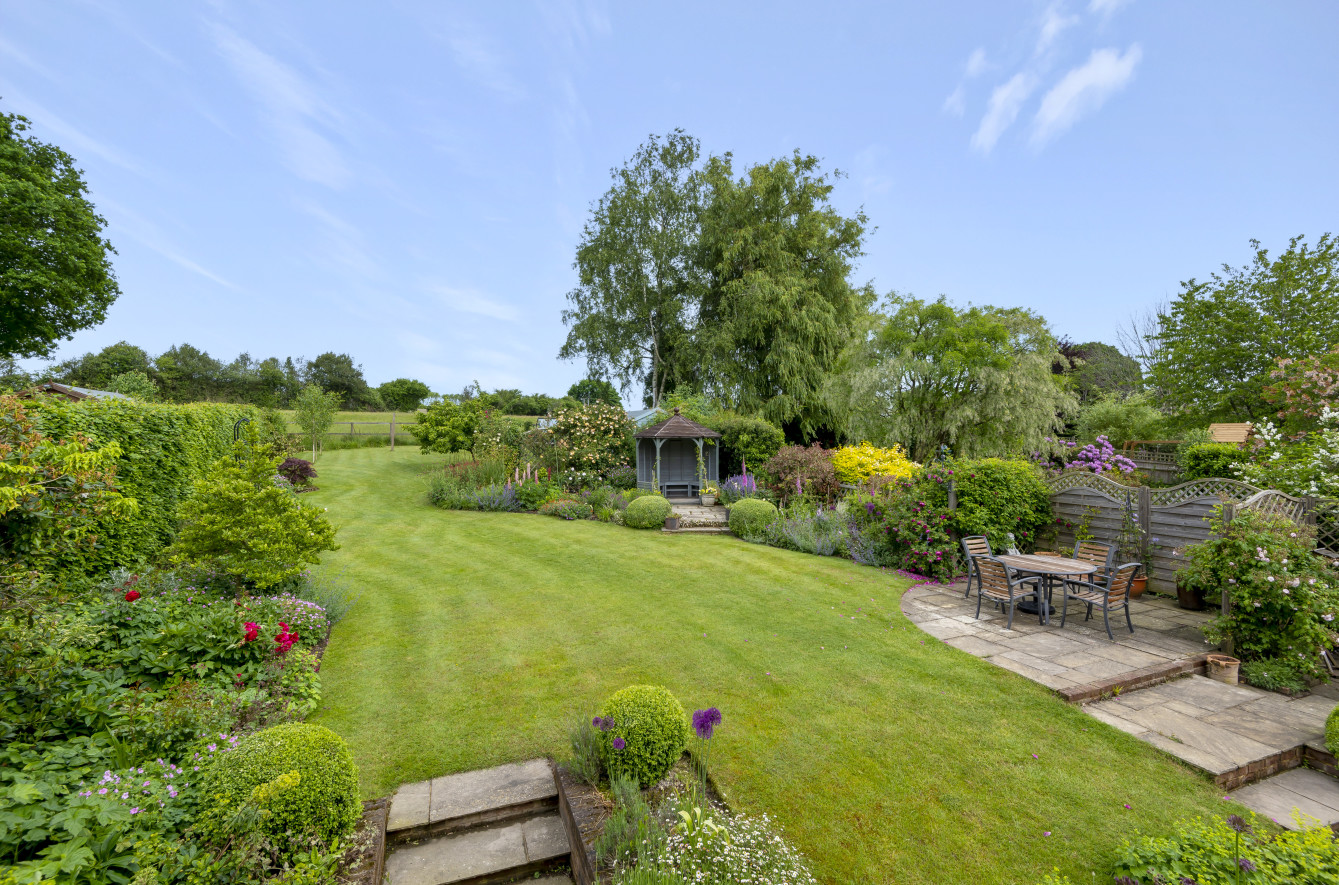 Outside, the rear garden is a particular feature extending approximately 110ft, laid to lawn with shaped, well-stocked mixed flower and shrubbery borders, a kitchen garden area with raised beds, a timber shed, a greenhouse, a retaining brick wall with flower beds and a paved seating area with a timber summerhouse. The whole overlooks a field to rear.