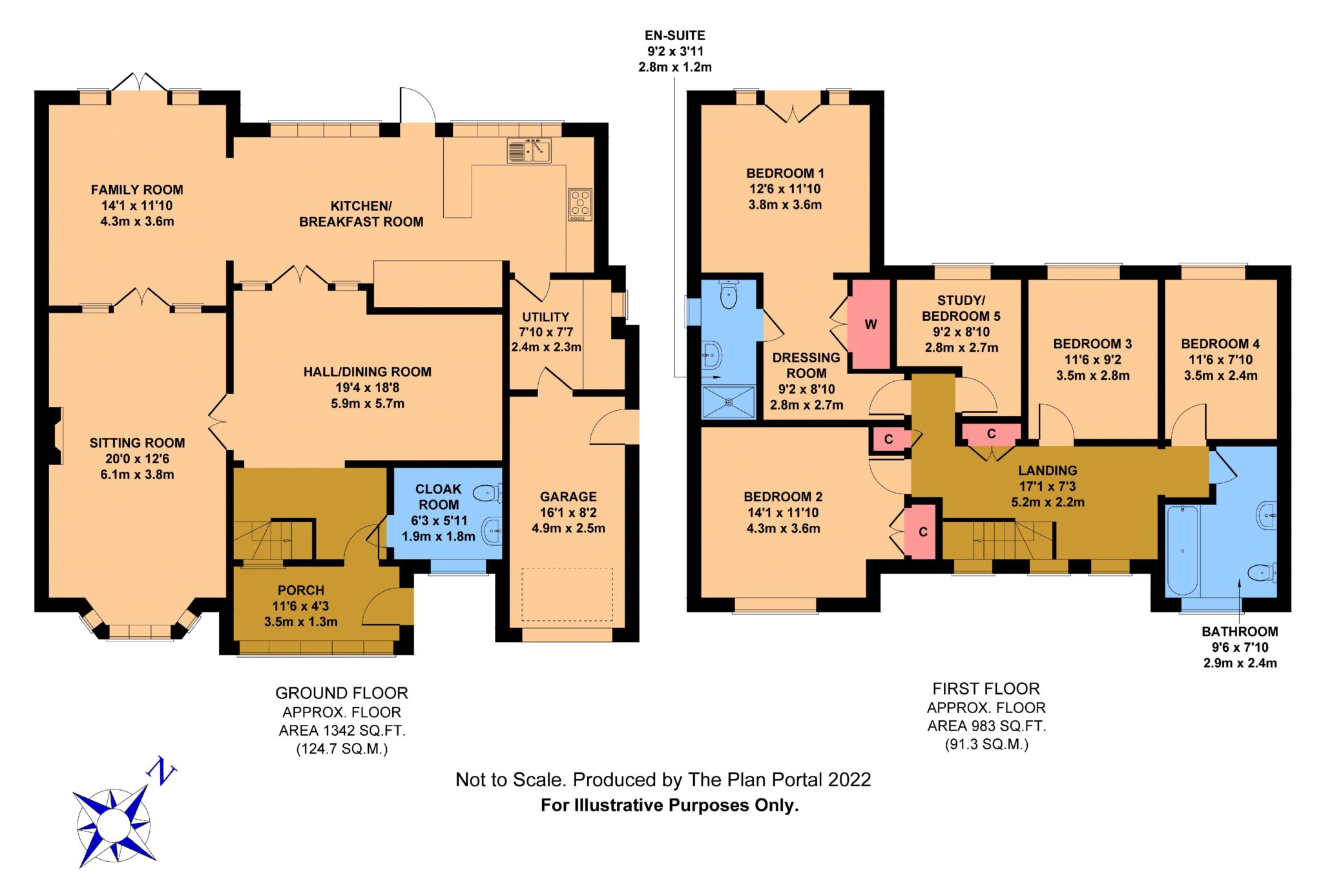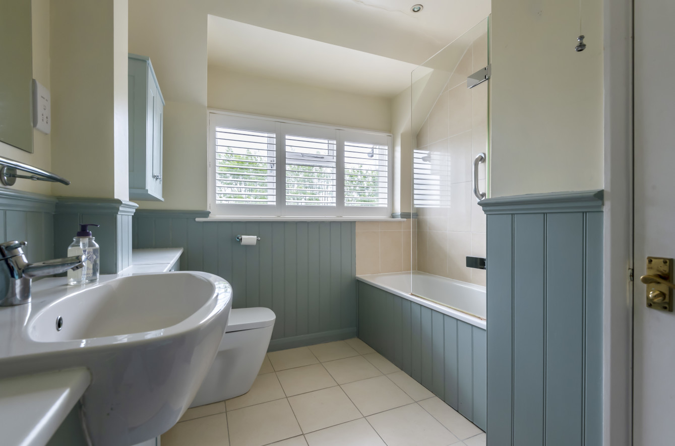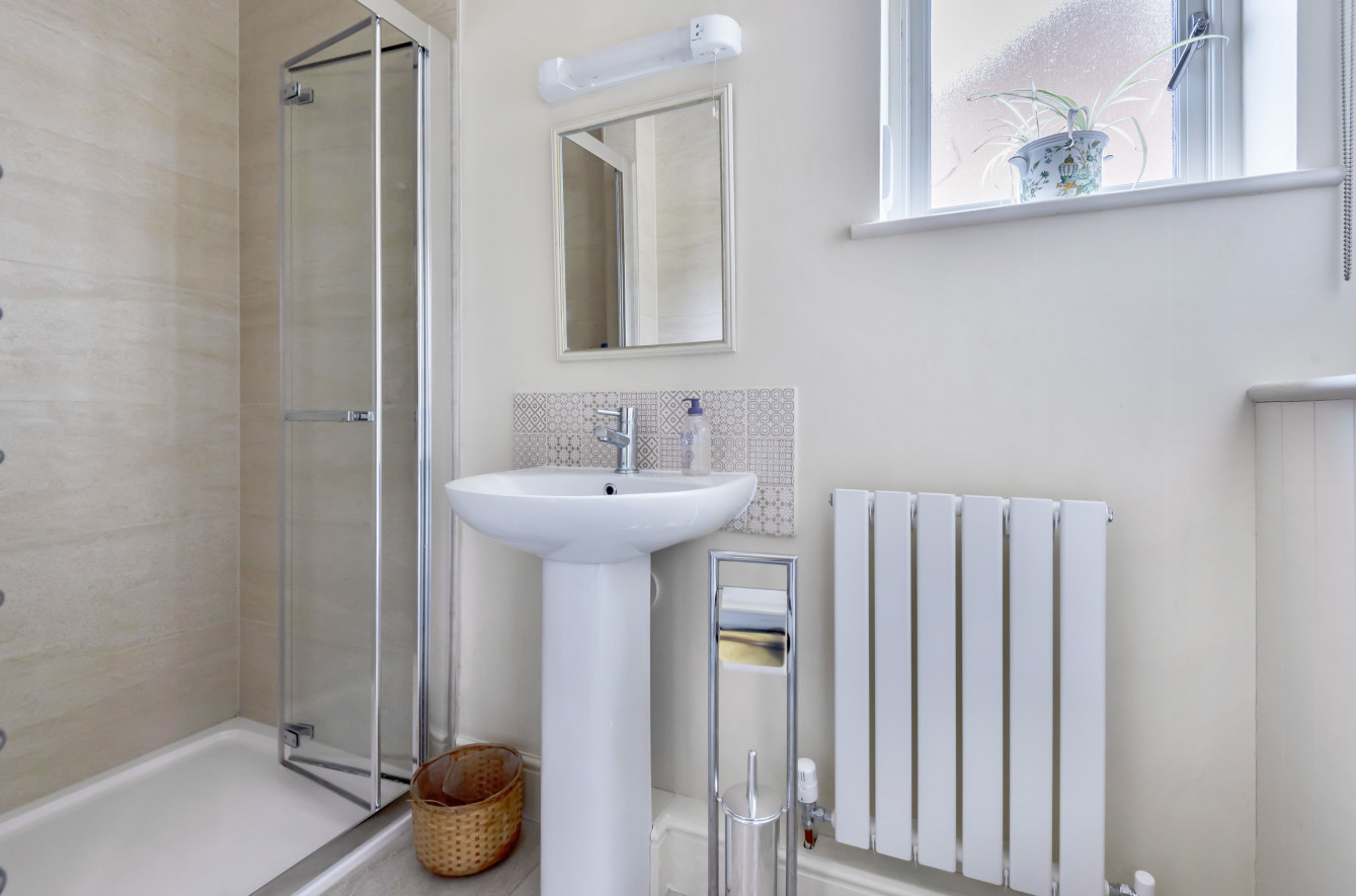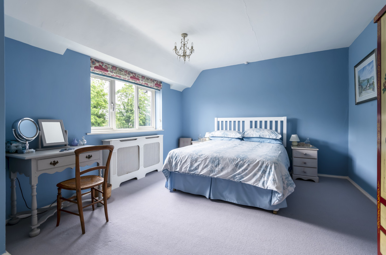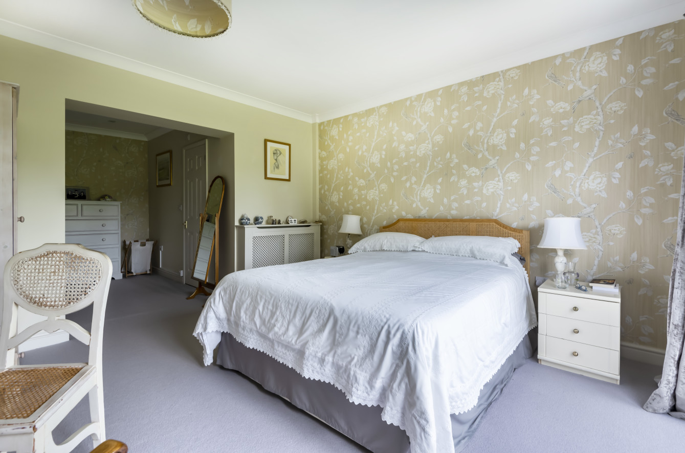 Five bedrooms are arranged over the first floor accessed via an oak and glazed staircase, including a master bedroom with full ceiling height windows opening out to provide a fine outlook across the rear garden, dressing area with fitted wardrobes and an en suite shower room with power shower, radiator and a heated towel rail. The landing has fitted book shelving.