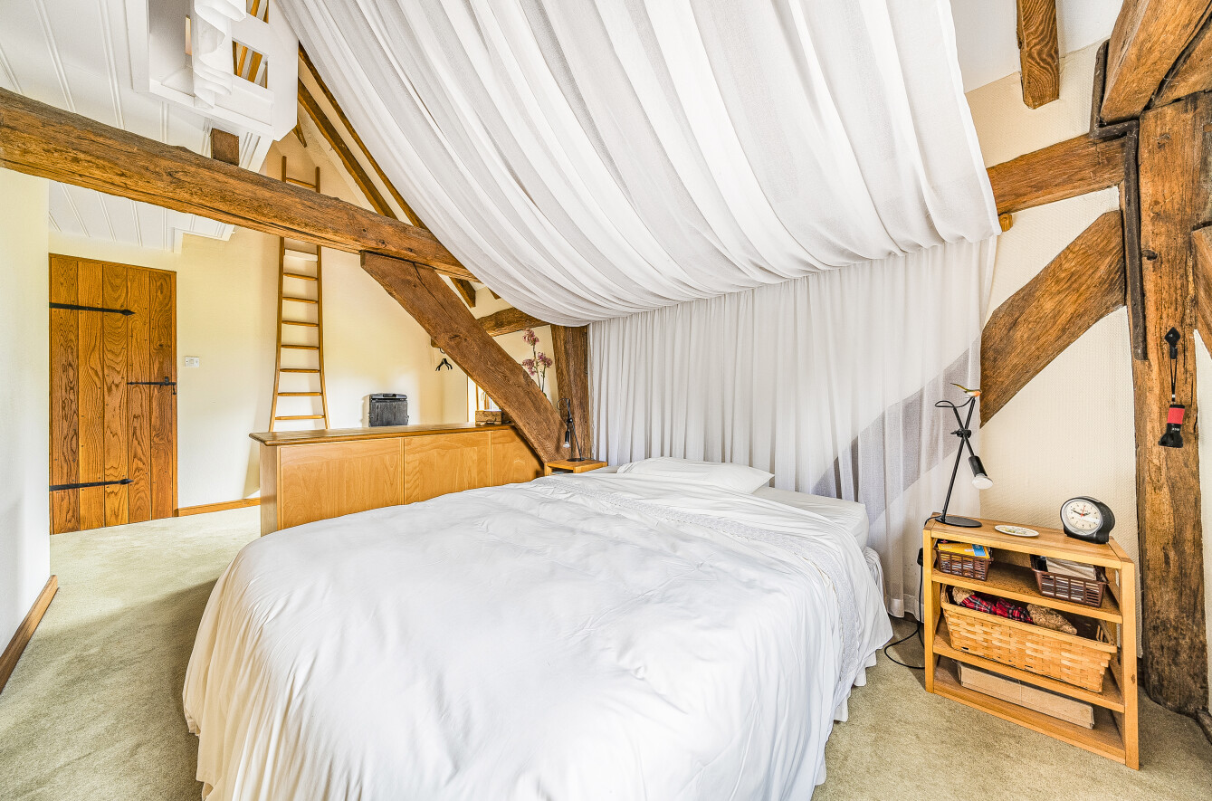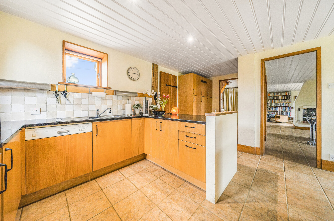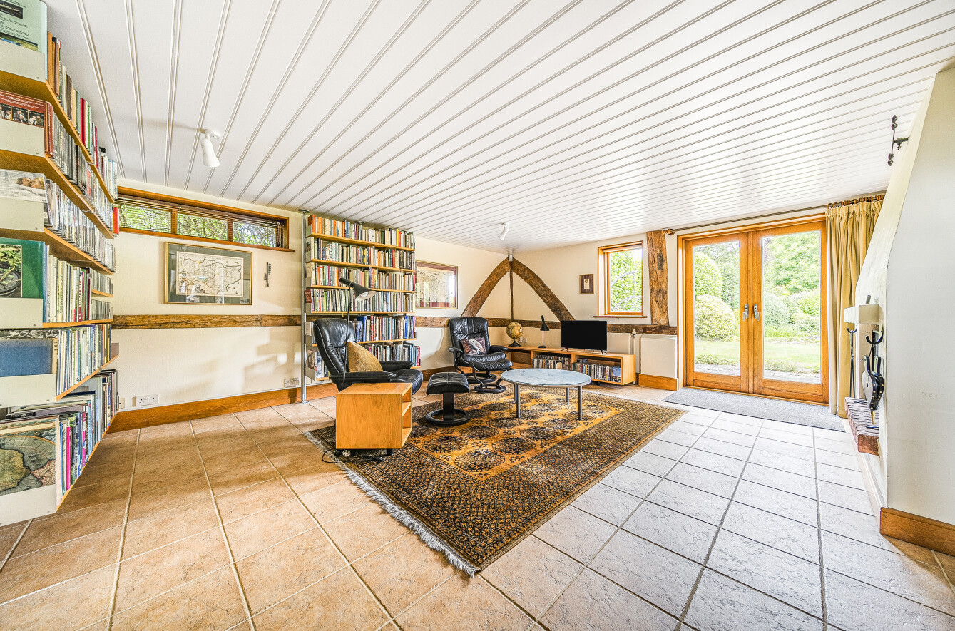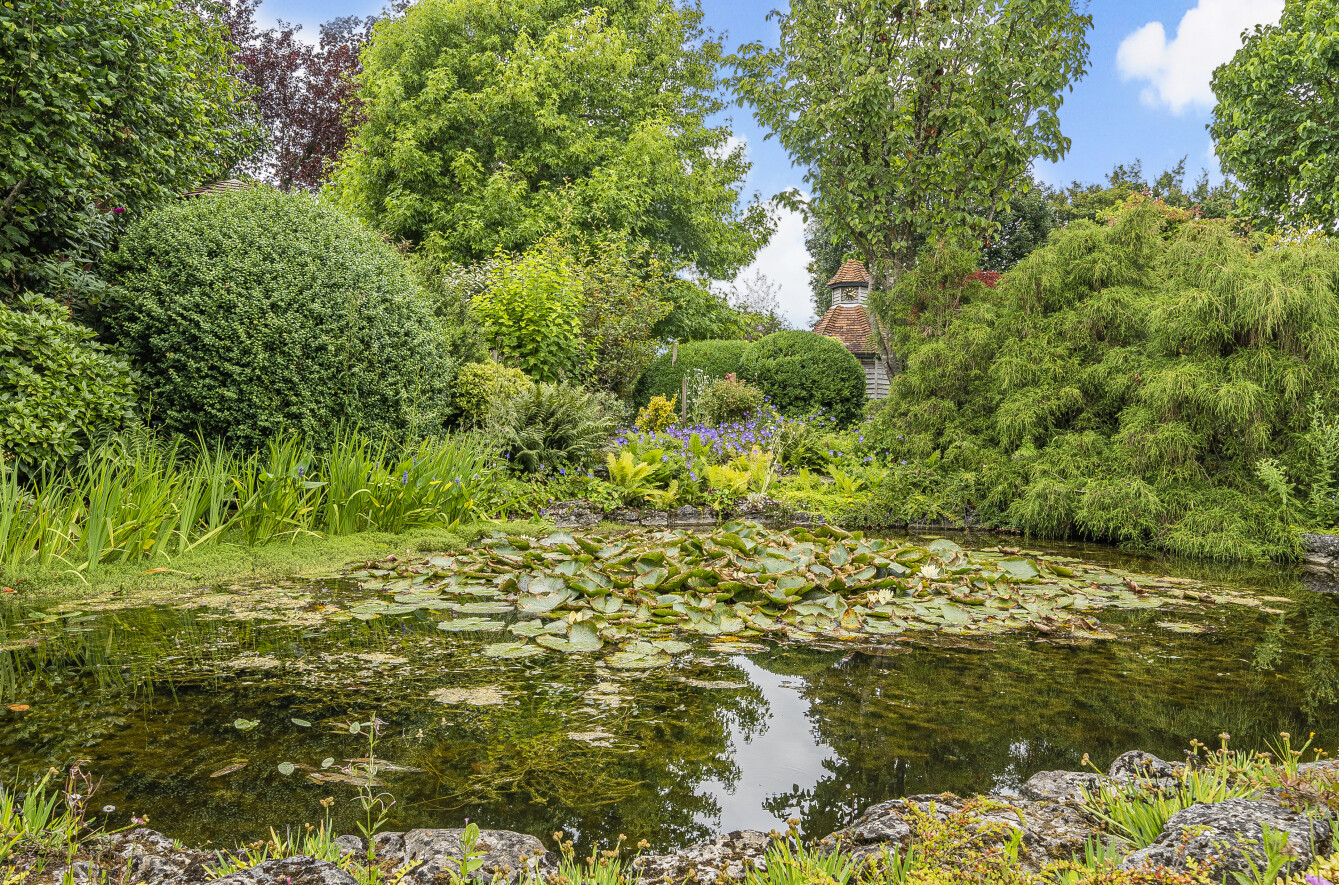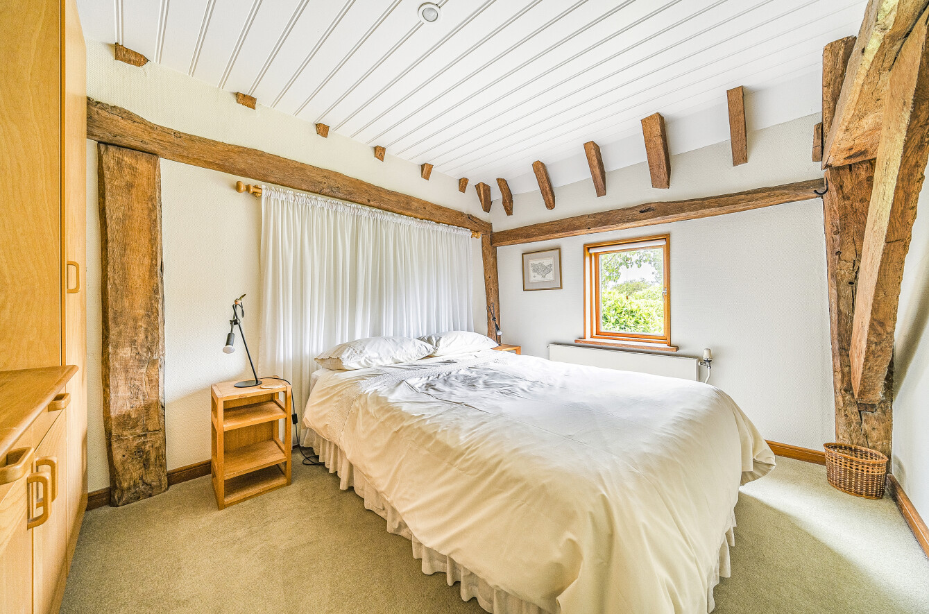 This charming grade II listed, circa mid 1600s detached Kentish barn occupies a semi-rural farm hamlet surrounded by beautiful Kent countryside a short distance from the pretty village of Marden. The barn was converted to an exacting standard 1987/1988, in good order throughout with character features including exposed beams, vaulted ceilings and is arranged over two floors. The barn sits in grounds of 1.56 acres (tbv) including formal gardens. Within the garden are two bespoke ornamental buildings. Adjoining the formal gardens is a traditional orchard with old English varieties. together with a detached open fronted twin bay cart lodge, with an enclosed, secure storage shed alongside, ideal for keeping garden implements. The whole occupies a favorable semi-rural location, adjoining and overlooking fields and countryside.