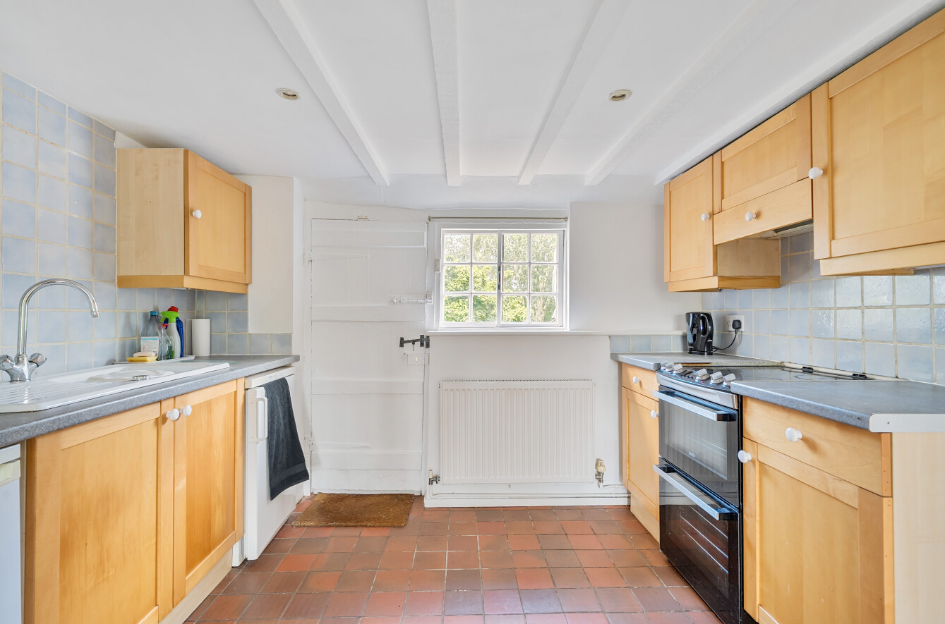 Cotmans is a pretty Grade II listed detached cottage, presenting brick and tile hung elevations, set beneath a pitched and hipped tiled roof. The character accommodation is arranged over two floors and is briefly described as follows; kitchen/breakfast room with double aspect and tiled flooring, delightful sitting/dining room with two feature fireplaces, utility room with cellar access and a shower room. Three bedrooms are arranged over the first floor, all with beautiful view across The Green and Clock Tower. Bedroom one with ensuite bathroom and two storage cupboards. Bedroom two with decorative fireplace and storage cupboard and bedroom three with storage cupboard. The family bathroom is a good size and fitted with a white suite.