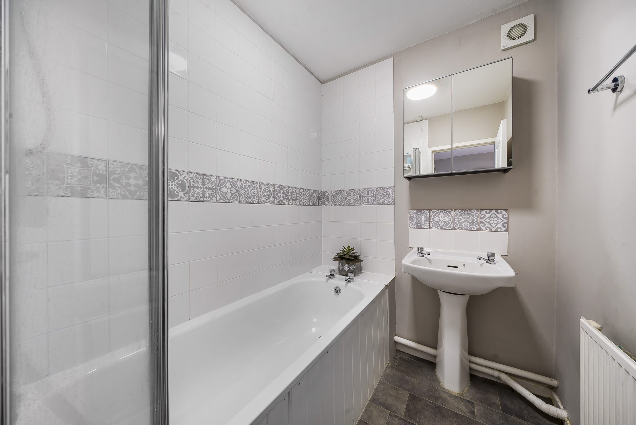 Outside, the rear garden is a particular feature, extending to approximately 75 ft laid to lawn with shaped flower bed, paved patio, a side gate and timber shed. The whole garden is fenced and enclosed. To the front is communal parking. The current neighbourly arrangement regularly provides parking spaces directly in front of 4A for two cars.