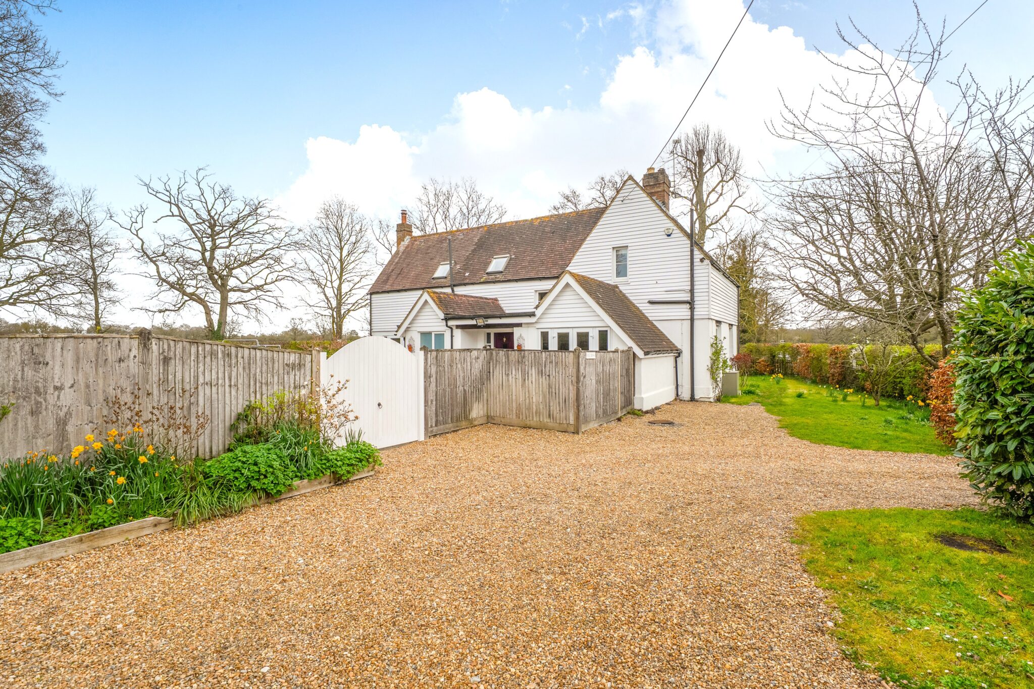 A charming detached former lodge house providing well proportioned four bedroom and three reception room family accommodation, complemented by an established lawn garden and generous gravel parking, together with a detached timber outbuilding. In all extending to approximately half an acre, occupying a semi-rural location on the village outskirts within the Cranbrook school catchment area.