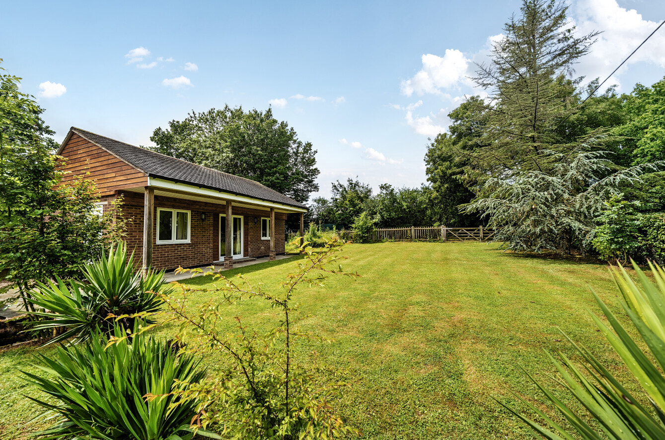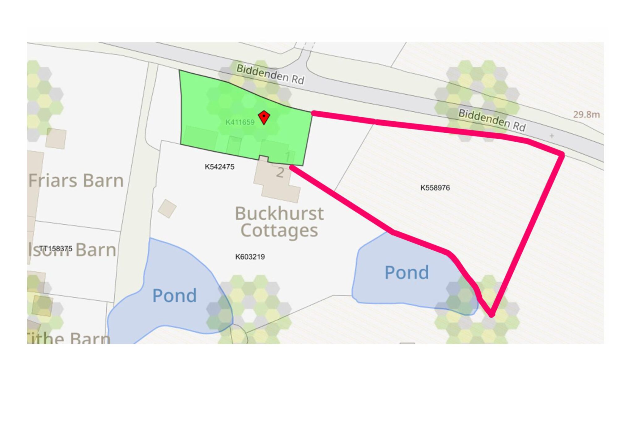 Outside, wrought iron double gates open onto a concrete drive, leading up to a detached brick single garage, fitted with wooden double doors. The established gardens are laid to lawn, with well-stocked borders and beds, including a kitchen garden area with greenhouse, a patio, pathway with retaining brick wall, trees including fir. Leading on from the garden is a paddock enclosed by hedging and stock proof fencing, benefitting from a separate access, with wooden five bar gate, onto Biddenden Road. The whole enjoys fine views outs across neighbouring countryside.