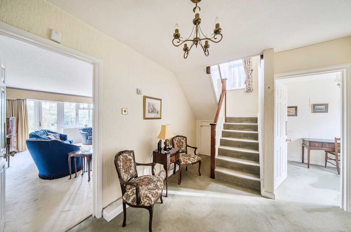 5 Tates is a detached family house presenting brick and tile hung elevations beneath a pitched tiled roof, now offering potential for the updating of the interior fixtures and fittings and extension, subject to obtaining all relevant planning consents.