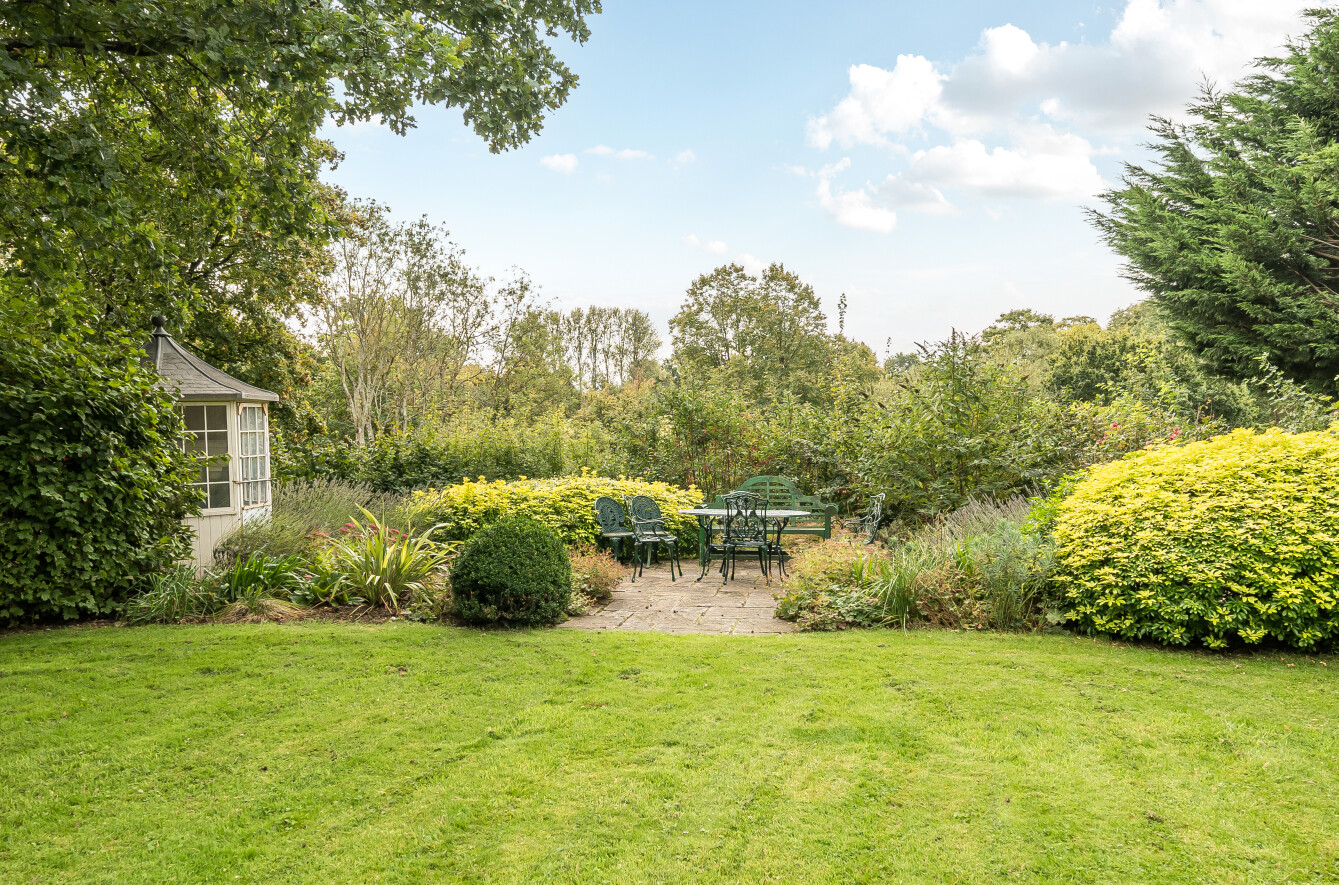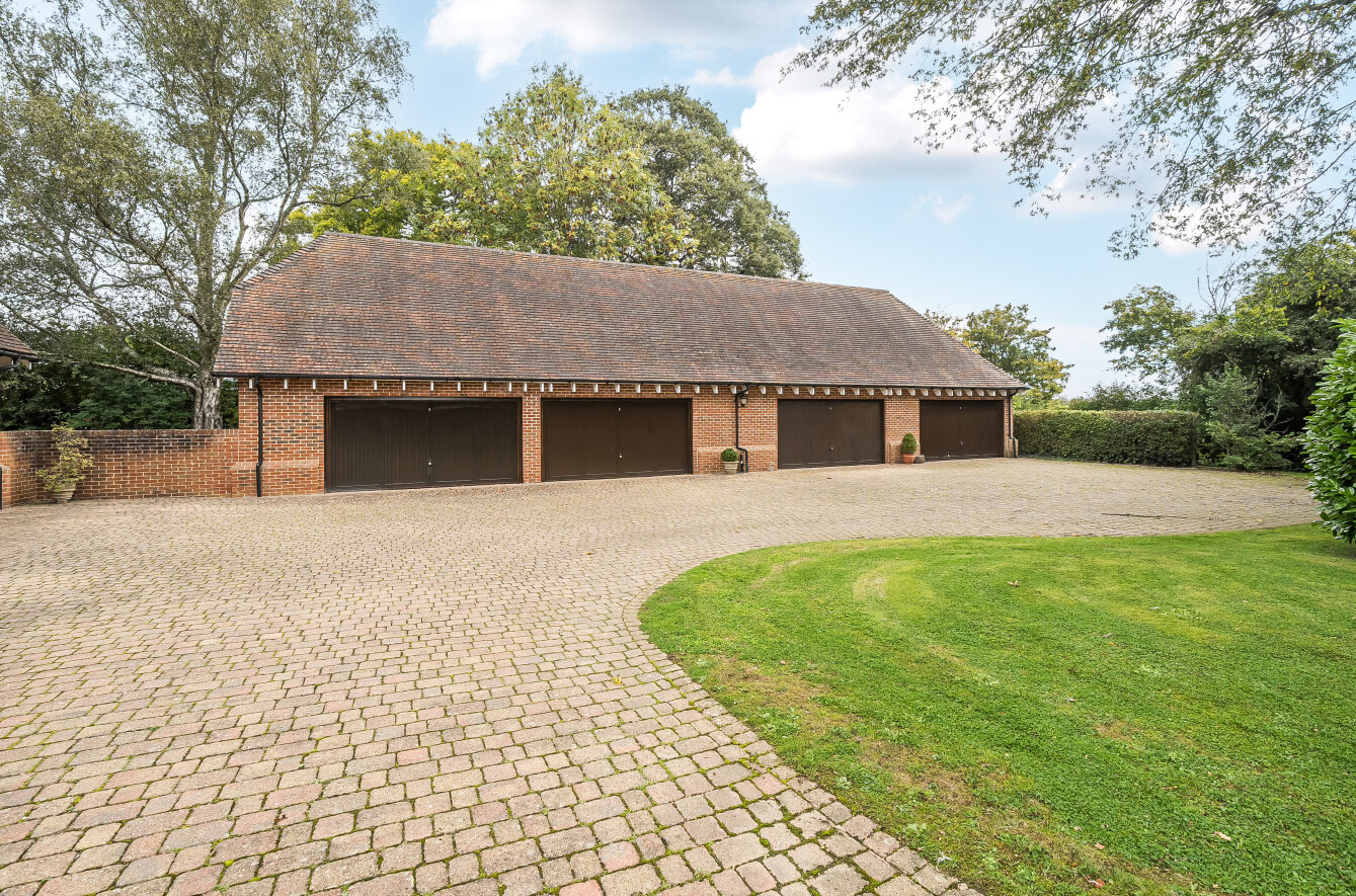 Hall House is accessed via a sweeping in-and-out drive, leading to a double garage, which is currently laid out as a workshop, with an upstairs storage room above and visitor parking area. Steps from the gravel driveway guide you to manicured lawns enhanced by mature trees, flower beds, and retaining walls. The rear gardens offer expansive rolling lawns, vibrant banks of azaleas and rhododendrons, wildflower pockets, and a majestic Cedar of Lebanon tree, with far-reaching countryside views. The gardens and grounds measure approximately 6.5 acres in total.