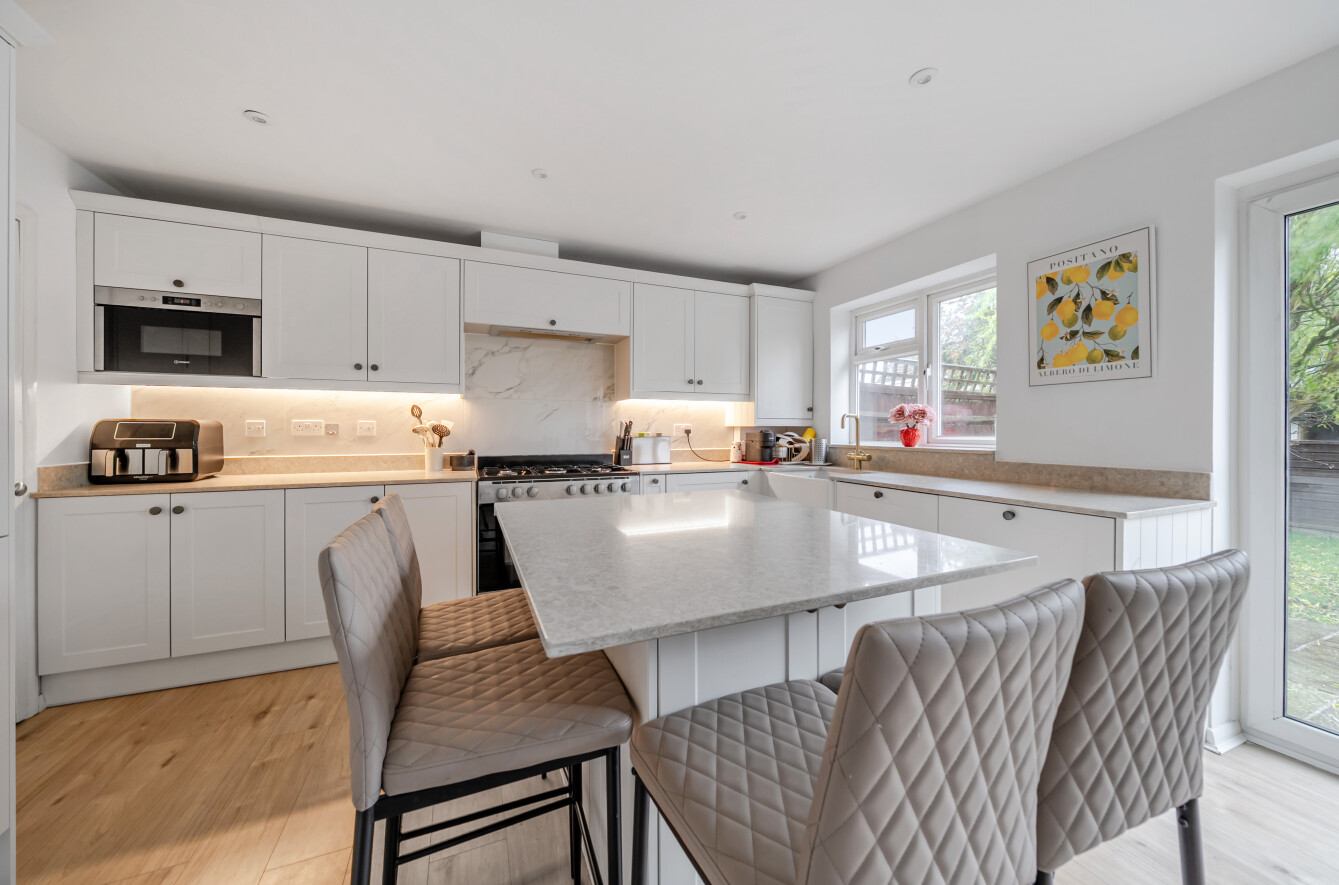 A well presented and ground floor extended, semi-detached family house, providing three bedroom accommodation including a beautifully fitted kitchen/dining room with island and newly fitted shower room, complemented by a front and rear garden, on a corner plot with a single garage and two parking spaces, all occupying a central village location, a level walk of the mainline station, Sainsbury’s supermarket and high street amenities. Cranbrook School Catchment area.
