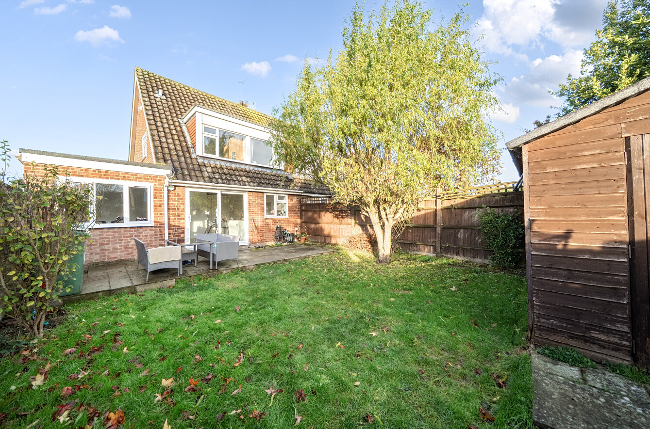 Outside, to the front and side is a lawned garden, two parking spaces and a single garage en bloc with a personal door immediately opening onto the garden. The rear garden is also laid to lawn, including a paved patio, willow tree, a timber garden shed, fitted with power. The whole is fenced and enclosed.