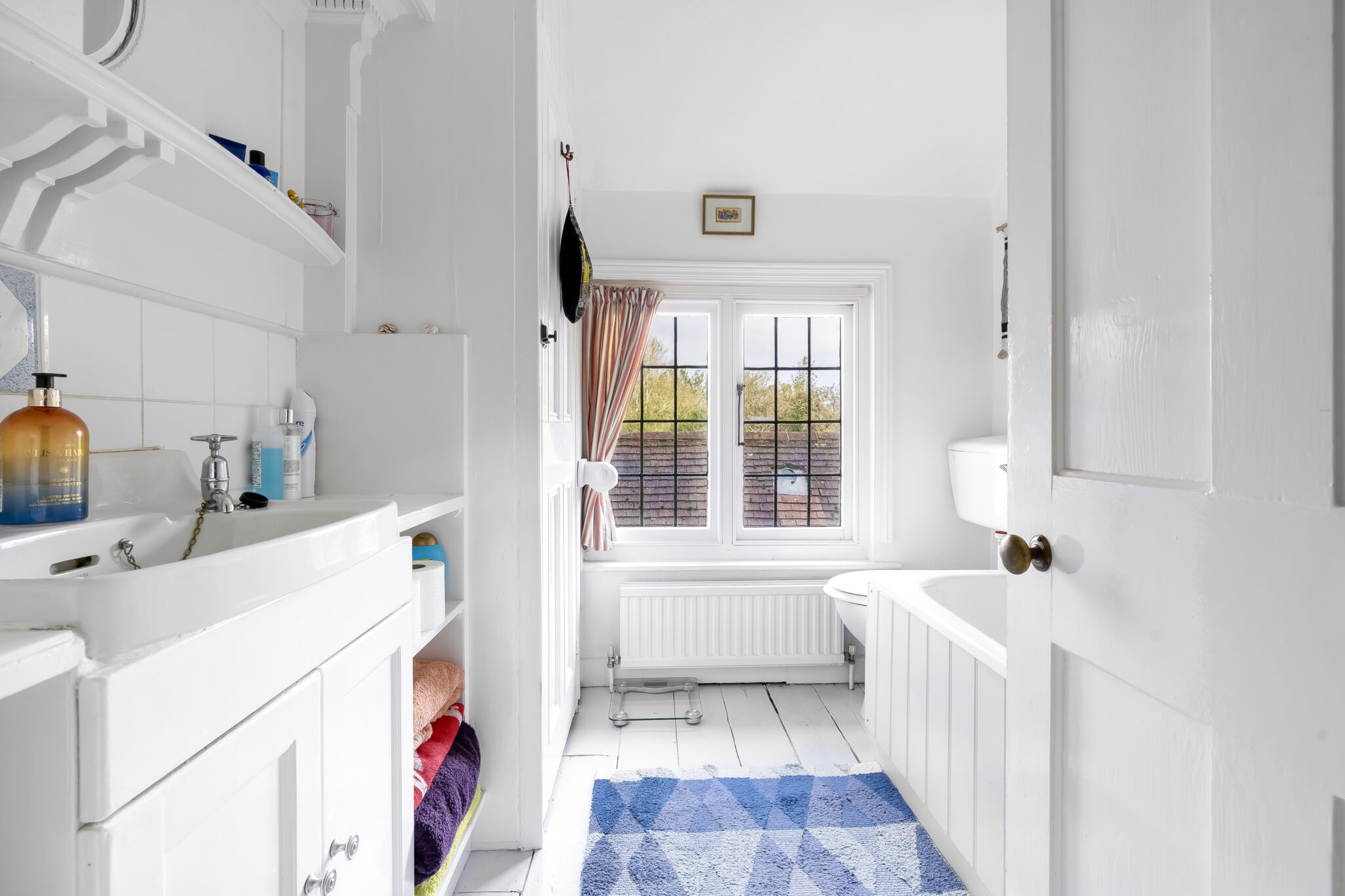 Arranged over the first floor, split level landing are four bedrooms including a main bedroom with views to front across to Bedgebury forest and an en suite shower room, fitted with a white suite. From the landing distance views extend out to front across to Bedgebury Forest. Bedroom two has exposed floorboards and a wash hand basin. Bedroom three has a wash hand basin and a double aspect. Bedroom four also has a double aspect enjoying a fine outlook across the garden. The family bathroom is fitted with a white suite including an enamelled bath.