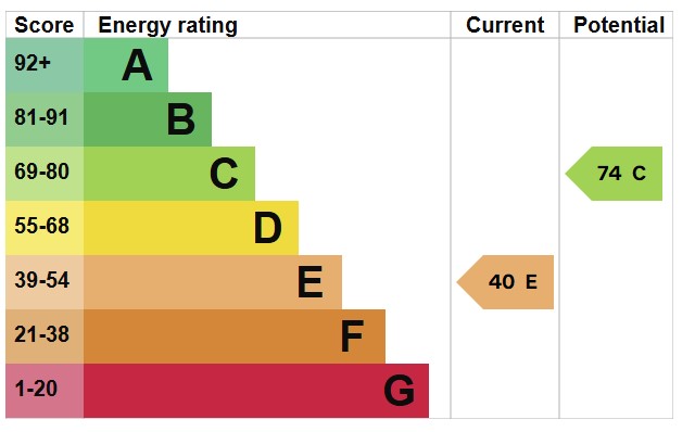 The property, which is set over two floors and includes more than 1270 sq. ft. of internal living space, has, on the ground floor, a kitchen/dining room, sitting room, conservatory, central hallway, bedroom and ensuite shower room. On the first floor you find two further bedrooms and a family bathroom.