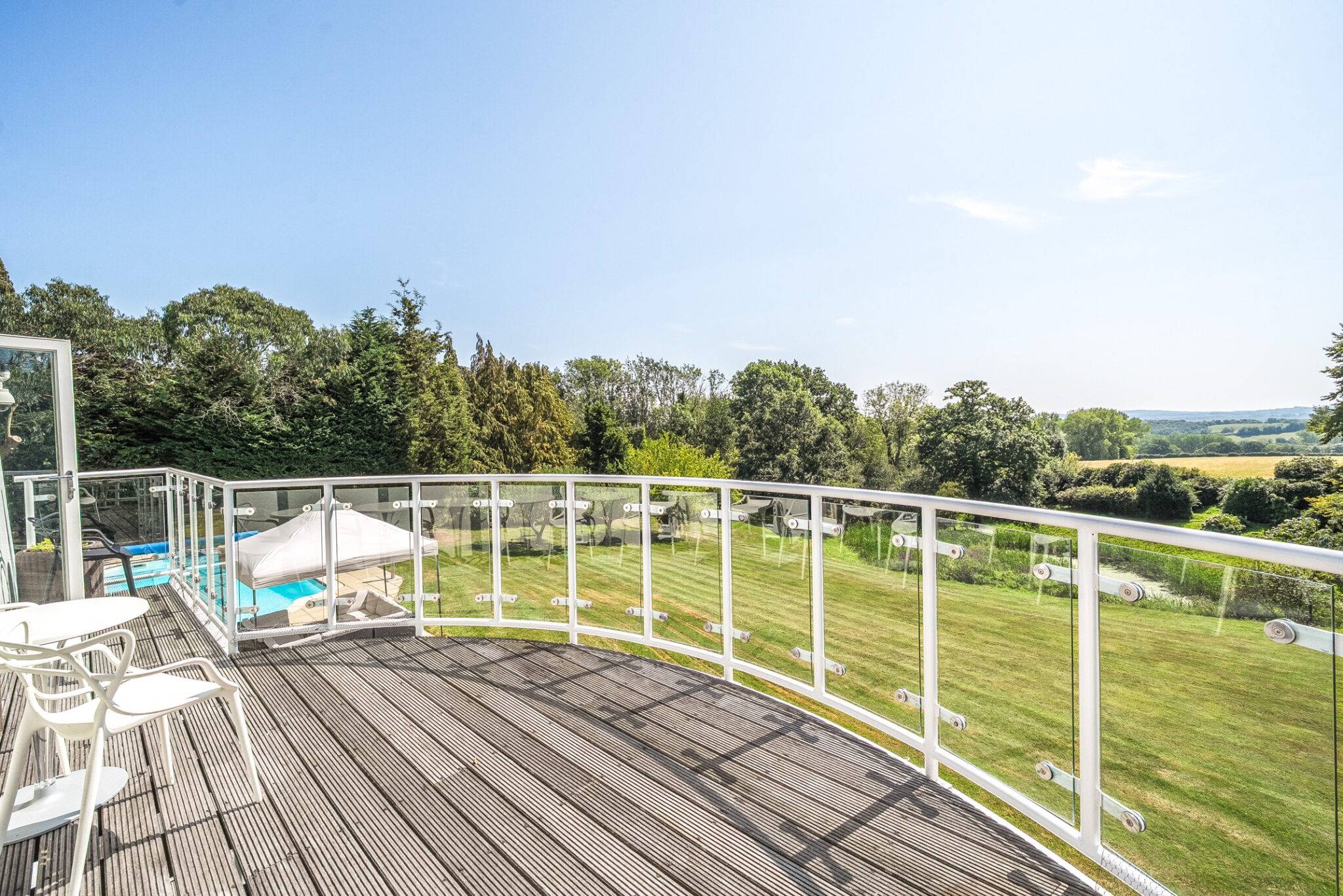 Lambert & Foster are delighted to bring to the market this magnificent six-bedroom detached family home with a gym and swimming pool and uninterrupted southerly views across the surrounding countryside set in approximately five acres of beautiful, landscaped gardens.
