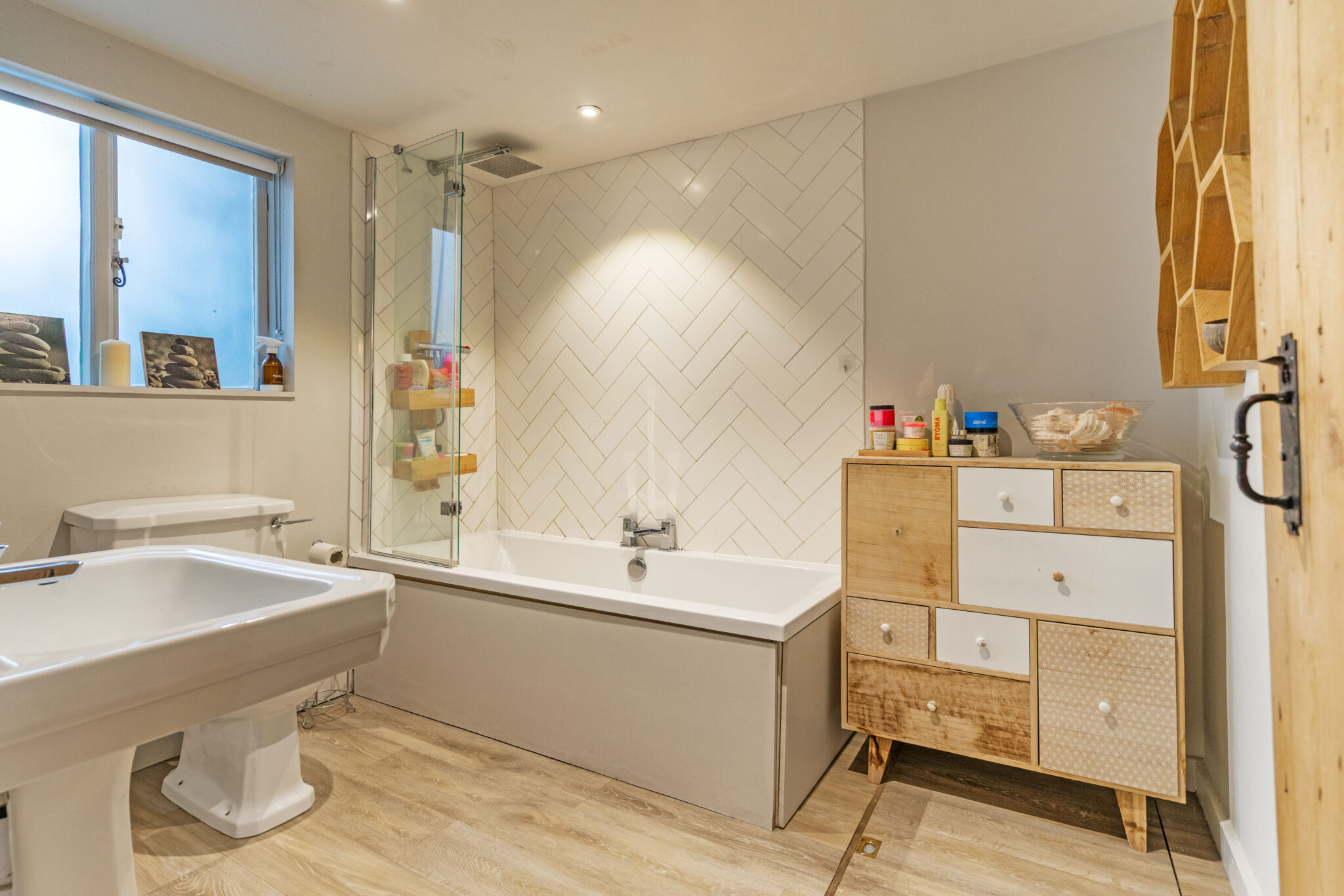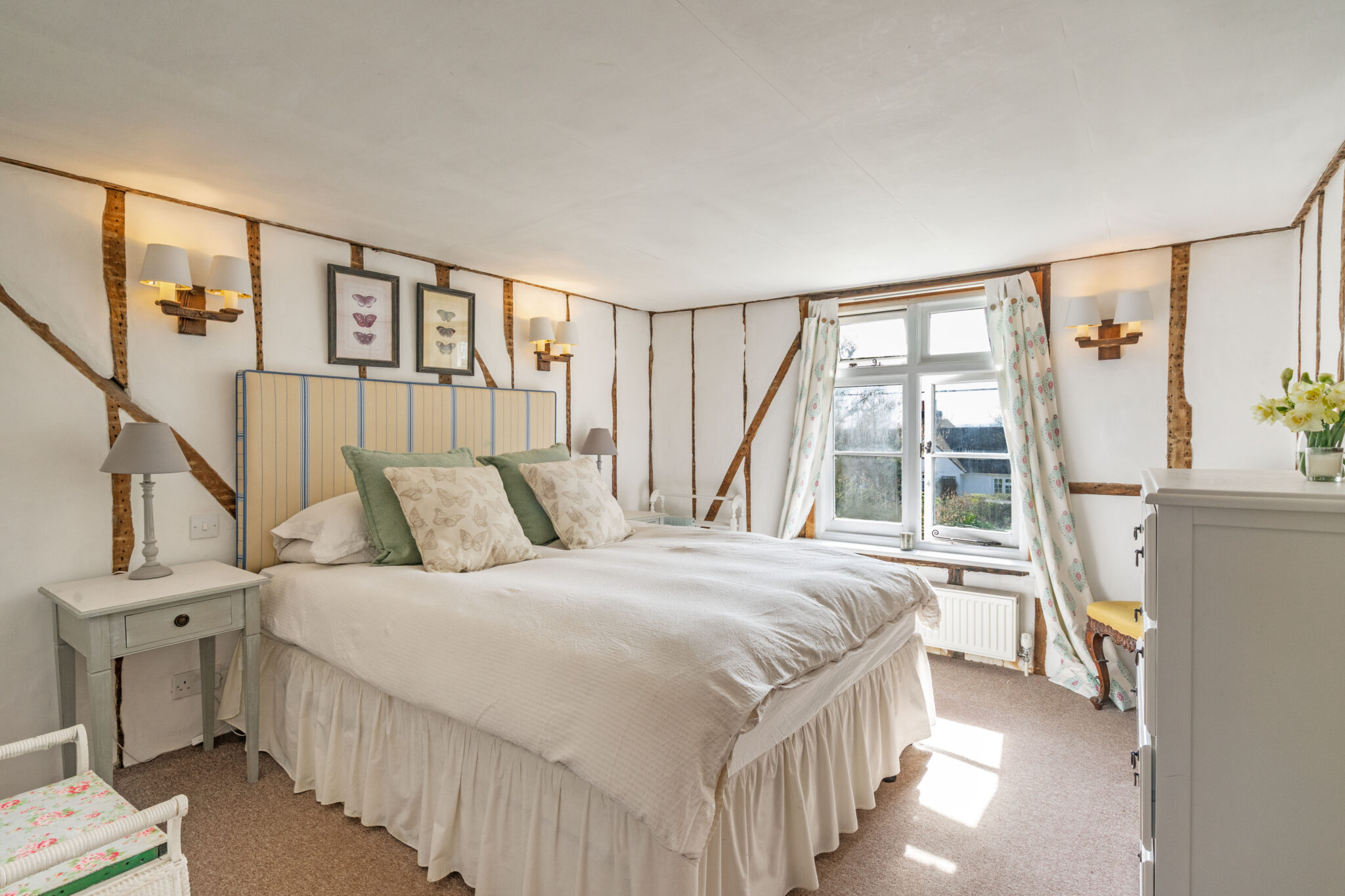 The new kitchen/breakfast room is a wonderful family space which benefits from underfloor heating, shaker style wall and floor cabinets, quartz worktops, a range cooker, Belfast sink, exposed beams and tiled flooring. Adjacent to the kitchen is a cosy double aspect dining room with a vaulted ceiling and French doors leading directly out to the patio and garden beyond – perfect for entertaining. The large family room and additional sitting room make for an ideal family home. Taking the stairs to the first floor, you find five well-proportioned bedrooms and a family shower room.
