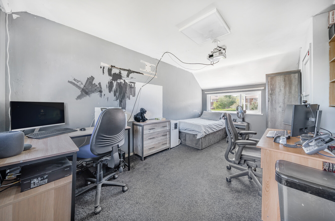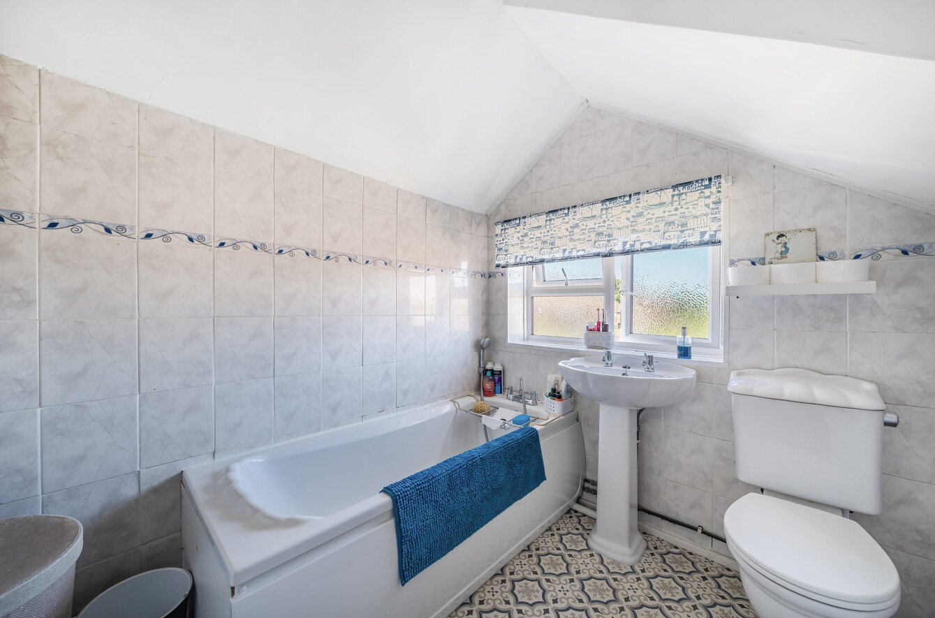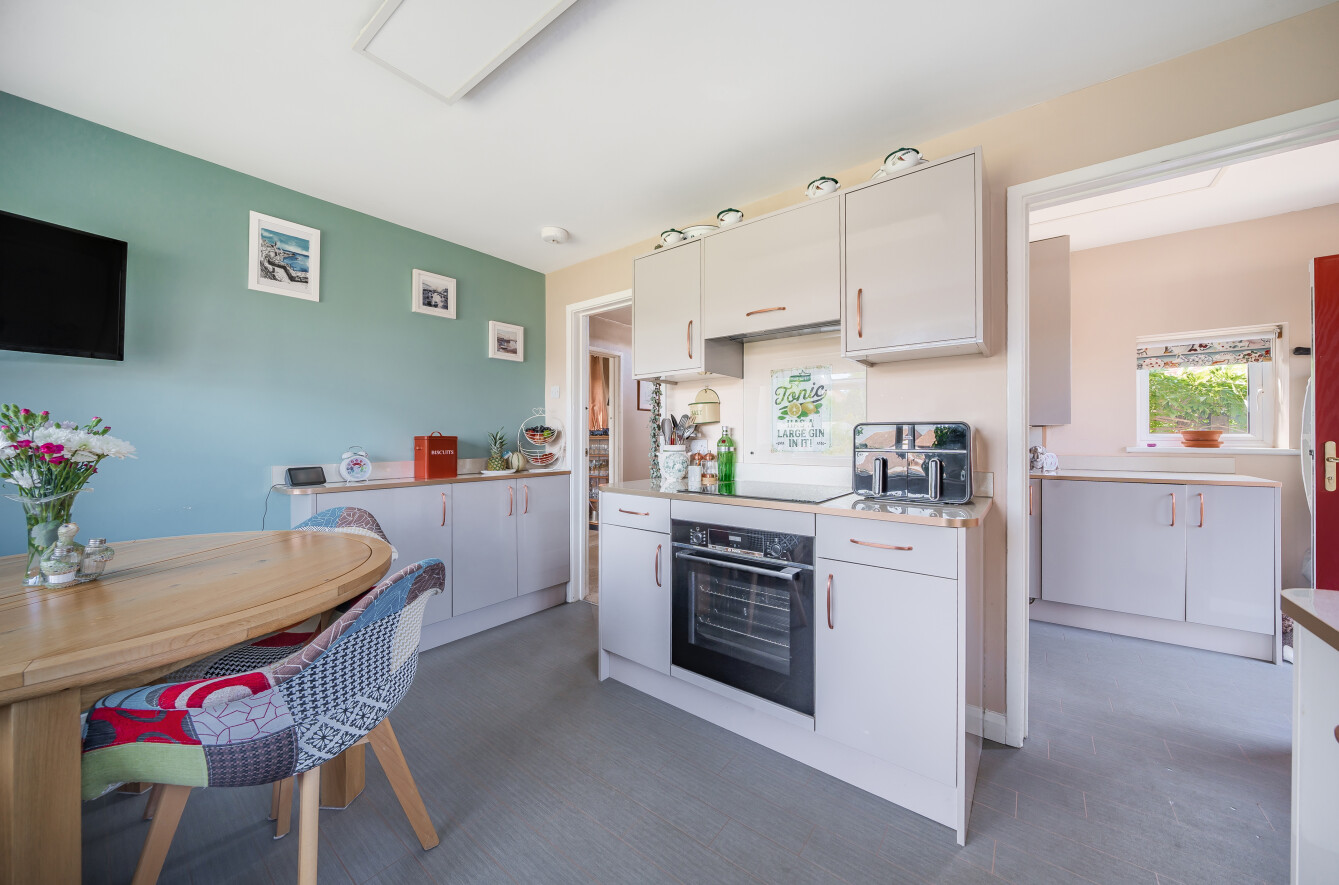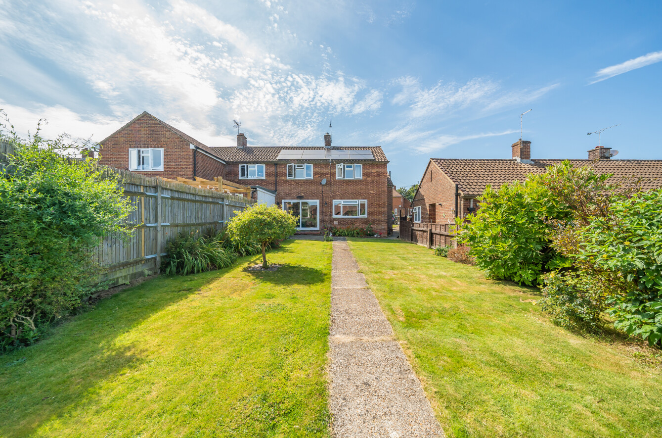 36 Frythe Way is an ex-local authority semi-detached house presenting brick elevations beneath a pitched tiled roof. The accommodation is arranged over two floors and briefly comprises of; entrance hallway, double aspect sitting room with feature log burner and sliding patio doors, newly fitted kitchen/dining room with garden views, pantry and utility room with side access. To the first floor, two double bedrooms both with garden views and a three piece family bathroom. The loft has a pull down ladder and is part boarded. This property now offers fantastic scope for further interior updating and has great potential to extend further (STPP).