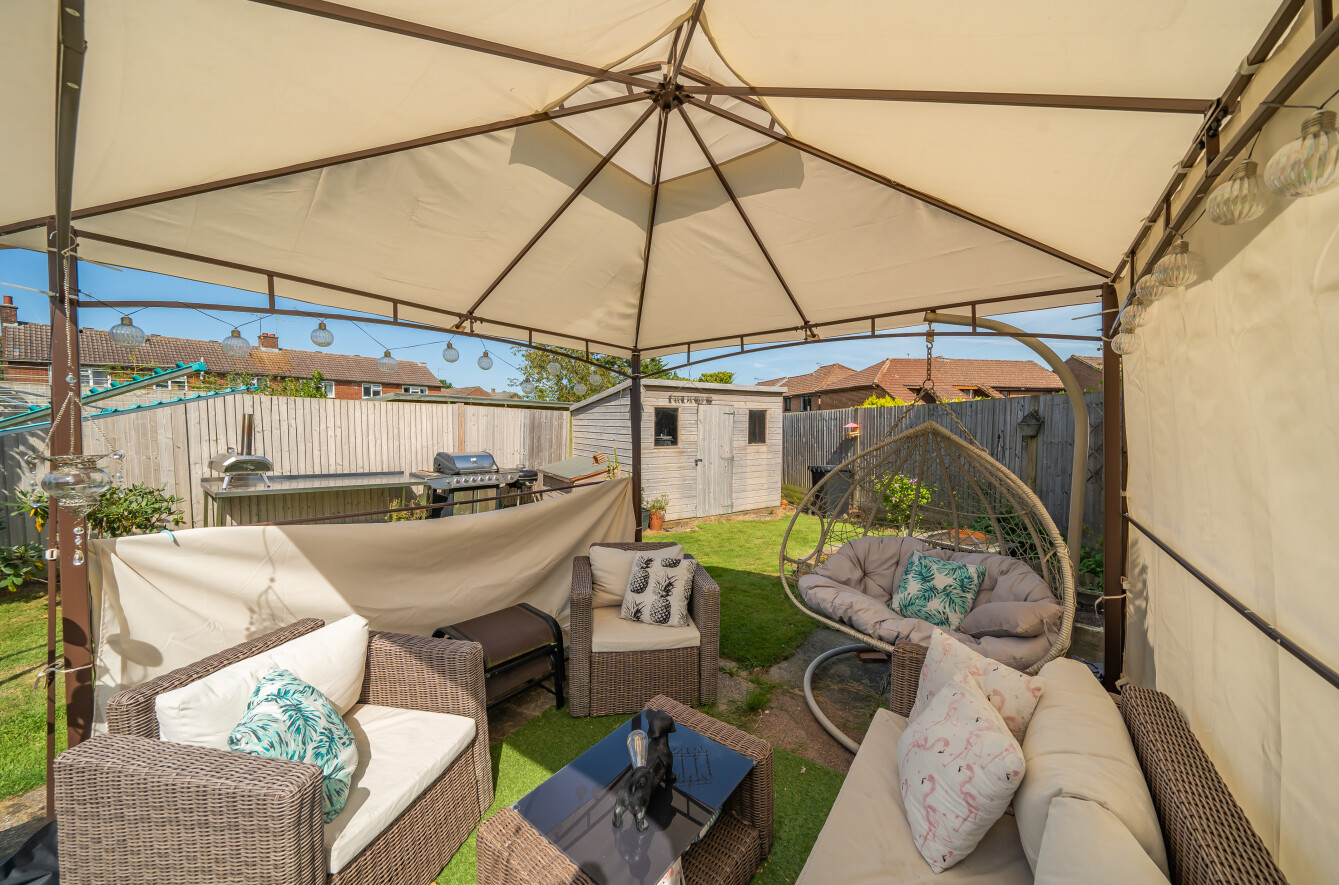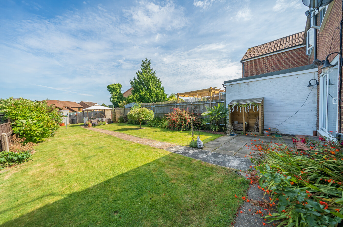 Outside, a neat front garden with off road parking for several vehicles and a beautiful, large rear garden mainly laid to lawn with mature trees and borders with additional patio areas to enjoy the sunshine all day.