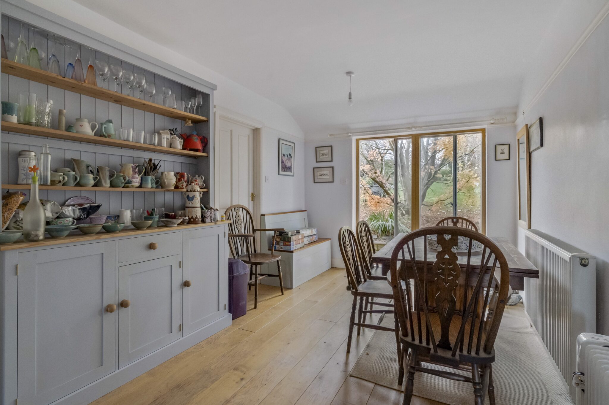 Beverley is an individual, detached, family house with 1950s origins and a significant two storey later addition. The interior ground floor layout could offer scope for reconfiguration, subject to obtaining any relevant consents and if so desired. Features include three separate reception rooms comprising a sitting room with a fireplace housing a wood-burning stove and pleasant aspect to rear out across the garden, a dining room with open fireplace and bay window to front. The family room with oak floor, was formerly the kitchen, with aspect to rear incorporating a sliding door to the garden. A useful study also overlooks the rear garden with direct access to outside. The kitchen/breakfast room has recently been updated with Howden gloss fronted units and drawers including a pull out larder style cupboard and bins, Farmhouse Belling gas fired cooker with filter hood over, space an plumbing for dishwasher and an aspect to front.