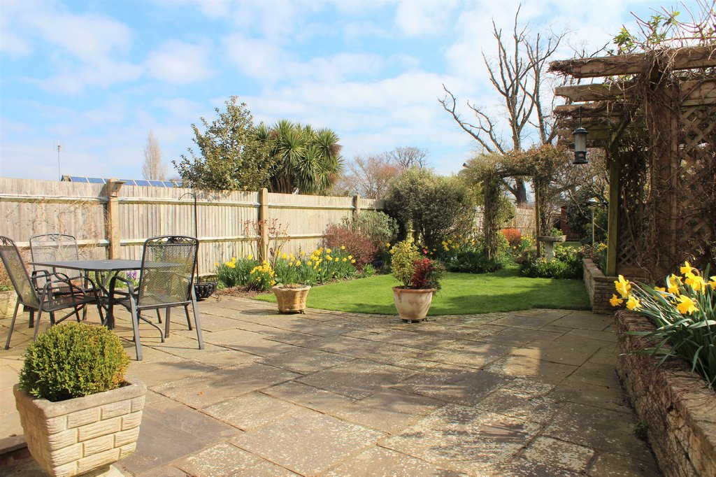 Outside: To the front is a brick paved driveway proving off road parking in front of a large garage. There is an area of front garden which is beautifully landscaped with a further planting bed to one corner and there is a gate providing side access to the rear garden. The garage has power and light connected with useful built-in storage and a utility area/workshop space. There is an electric roller door to the front with an integral door to the entrance hall. The rear garden is a real feature of the property again beautifully landscaped mature with an open aspect backing onto allotments. There is also a large patio entertaining area abutting the property with an electric awning from above the sitting room patio doors providing shade on those sunny days or there is a covered pergola offering another outlook over the garden to sit and unwind.
