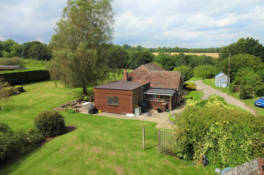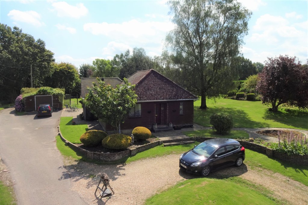 Outside: The property is accessed by a private driveway shared with one other neighbouring property located out of view to the north east of the boundary. To the front of the property is an in & out driveway providing ample off road parking for multiple vehicles. There is further parking to the side of the property and a detached garage. The gardens and grounds are a real feature of the property and enjoy an open southerly aspect. The plot in total spans about 9.72 acres. The main garden to the bungalow is mainly laid to lawn and interspersed with trees and shrubs whilst screened to the boundaries by post and rail fencing and a mature hedge line to the paddocks. There is an area of patio abutting the bungalow with access to the sitting room providing a space to entertain and dine alfresco. The remaining land is divided into two large paddocks, open grassland and a Christmas tree plantation.