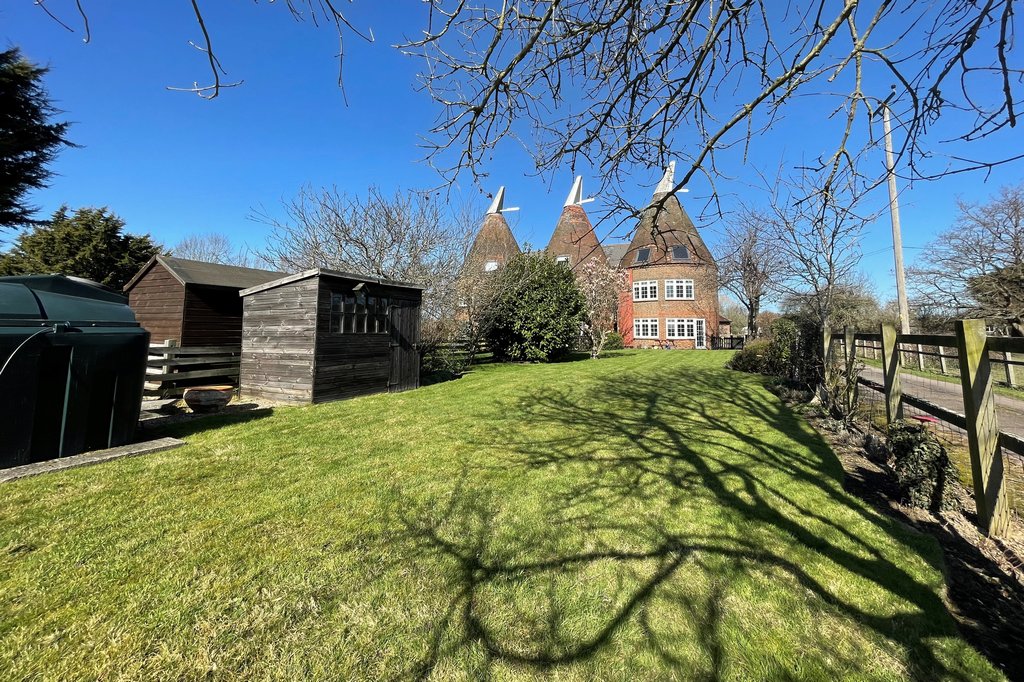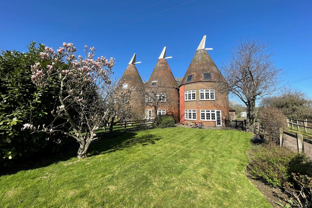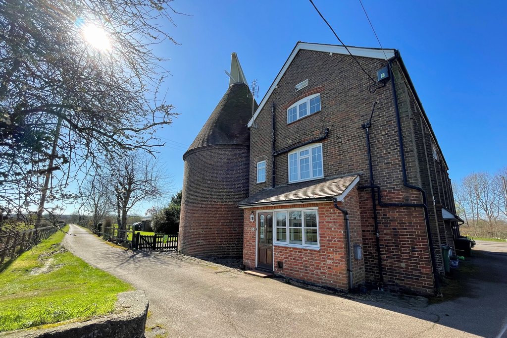 An opportunity to purchase an expansive character Oast house providing flexible accommodation over three floors with up to five double bedrooms and the benefit of a master en-suite shower room. In need of cosmetic modernising with great potential to adjust the ground floor layout to provide a larger kitchen diner subject to individual needs. Situated within a private hamlet on the rural outskirts of Paddock Wood with southerly aspect gardens and grounds extending to over two acres incorporating a three bay stable block. Within a short drive to major transport links and local amenities including schools and a mainline railway station. Offered to the market with NO FORWARD CHAIN.