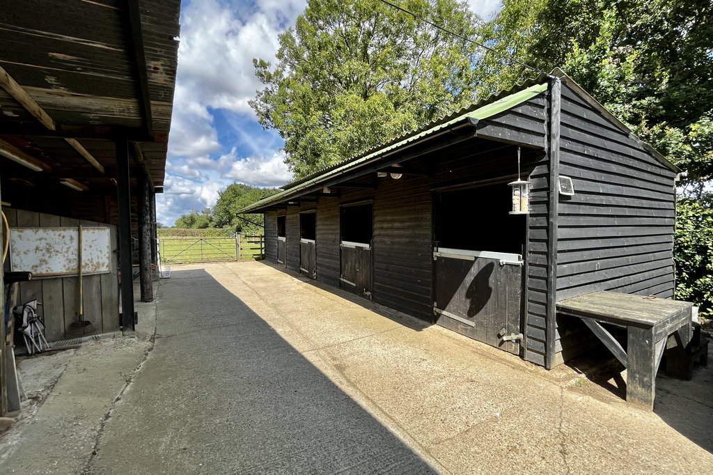 An opportunity to purchase a versatile five/six double bedroom detached family home developed and extended by the current vendors situated in an enviable, elevated position within the Kent Downs area of outstanding natural beauty. Set within a private farm hamlet this unique property benefits from a total plot of just over four acres with a detached double garage with home office above, detached four bay stables, detached multi-store hay barn and a 40×20 outdoor riding arena.