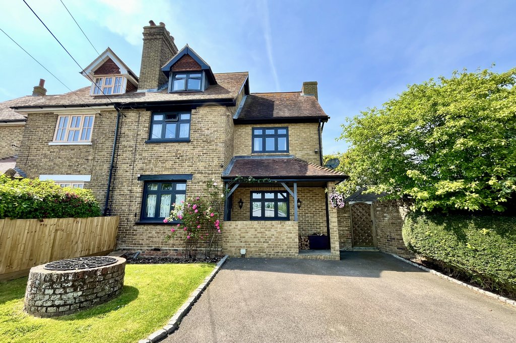 An immaculately presented four bedroom semi-detached family home situated in an elevated position on a large plot backing onto farmland with far reaching countryside views. Benefitting from a large open aspect rear garden with a detached home studio/office and to the front a driveway providing ample off road parking. Situated in a rural hamlet and only a short drive to a mainline railway station.