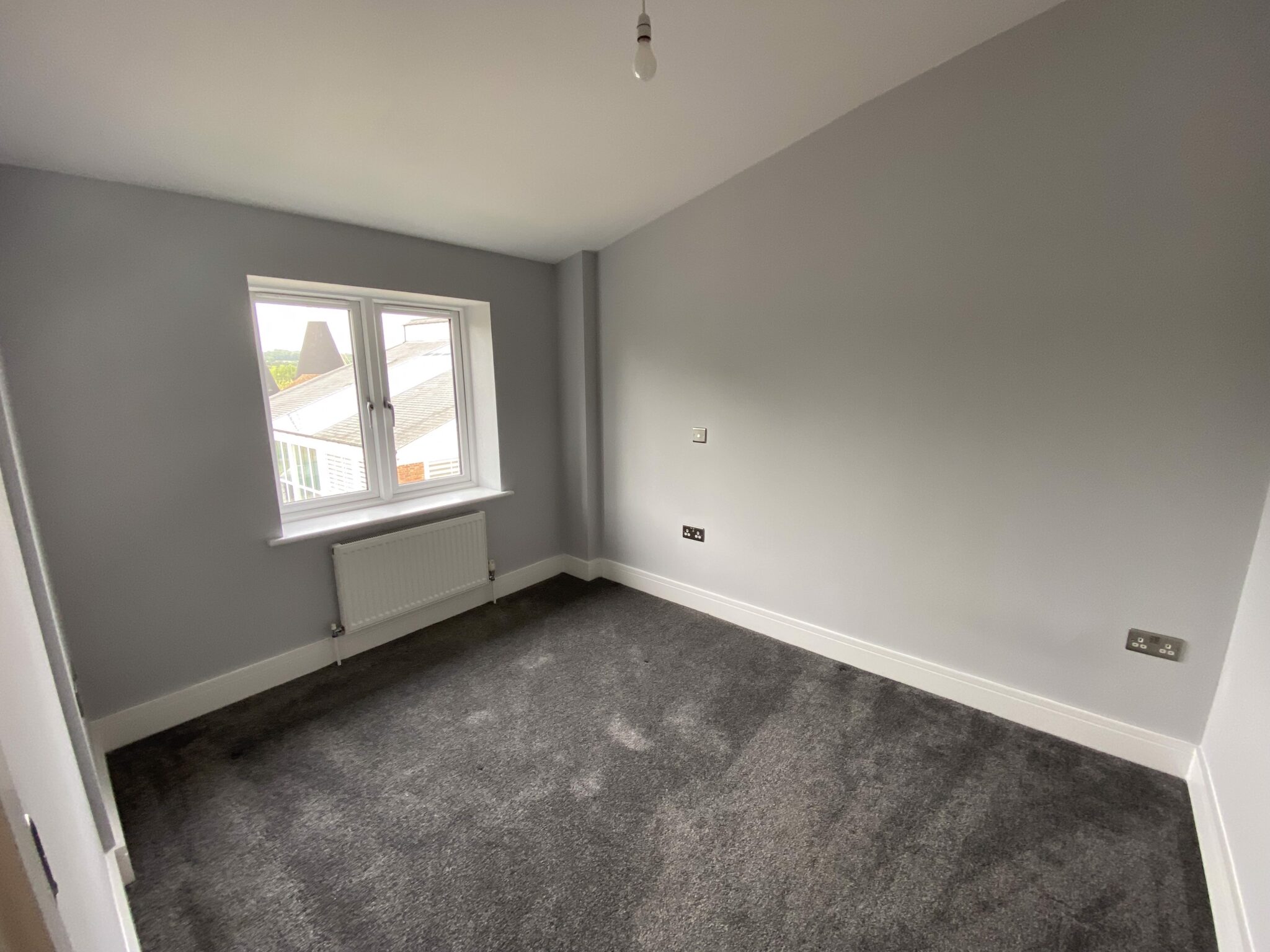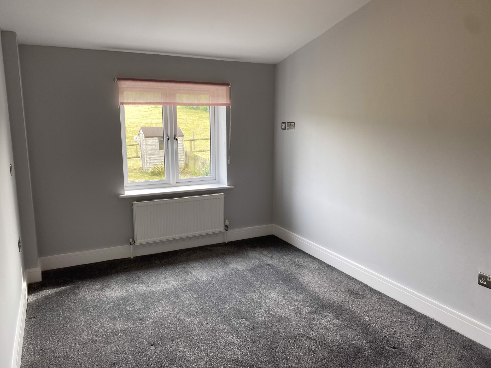 Oak staircase with grey carpet to first floor master bedroom with views from the window, door to en-suite shower room that is fully tiled with corner shower cubicle, WC, wash hand basin set in vanity unit with drawers, chrome heated radiator. Double bedroom 2 and good size single bedroom 3. Family bathroom- White suite, bath with shower over, WC, wash basin in vanity unit with drawers.