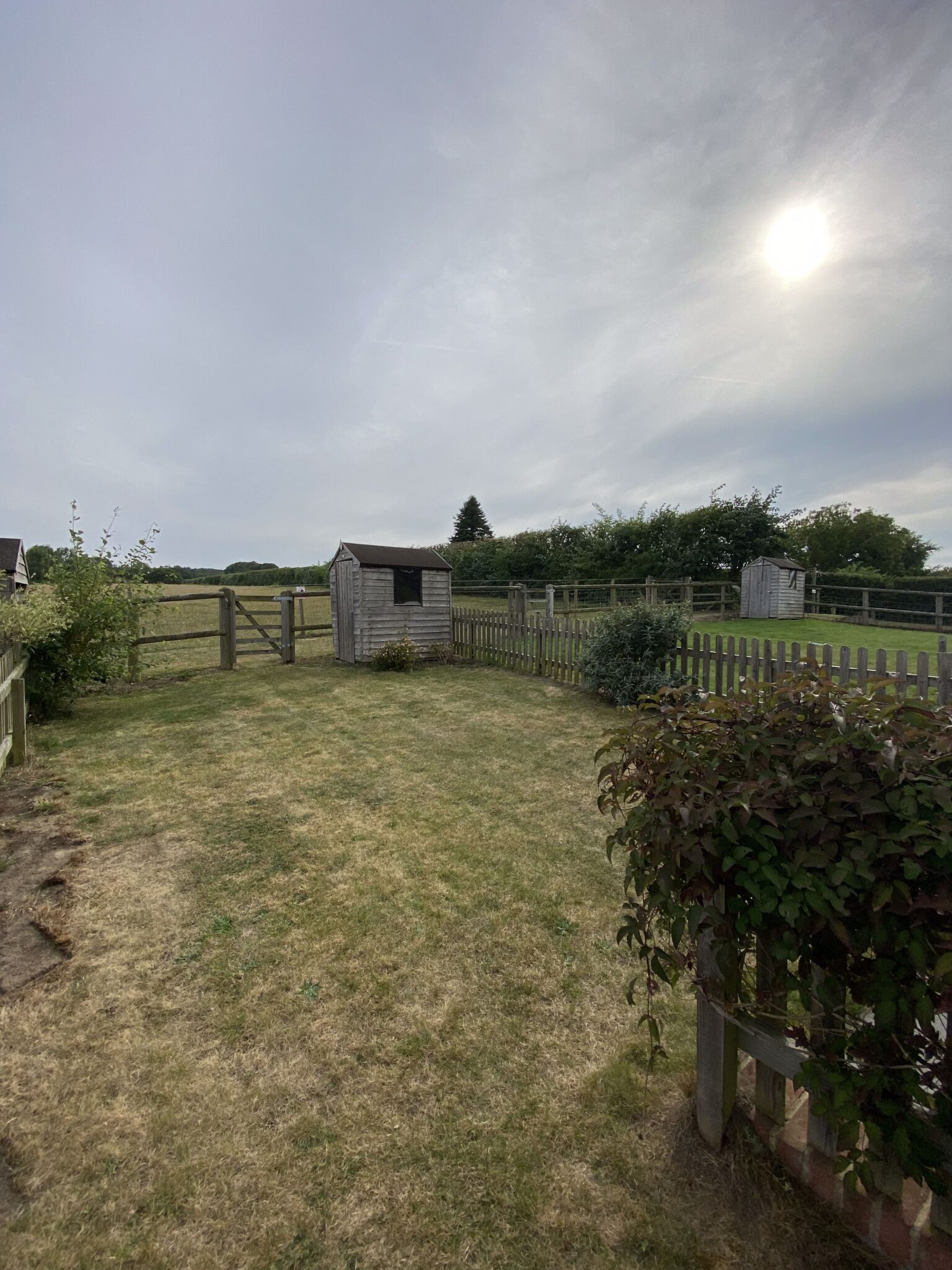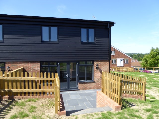 OUTSIDE: From Sitting Room French doors to Paved TERRACE with steps up to the enclosed GARDEN, with SHED and views over the countryside.