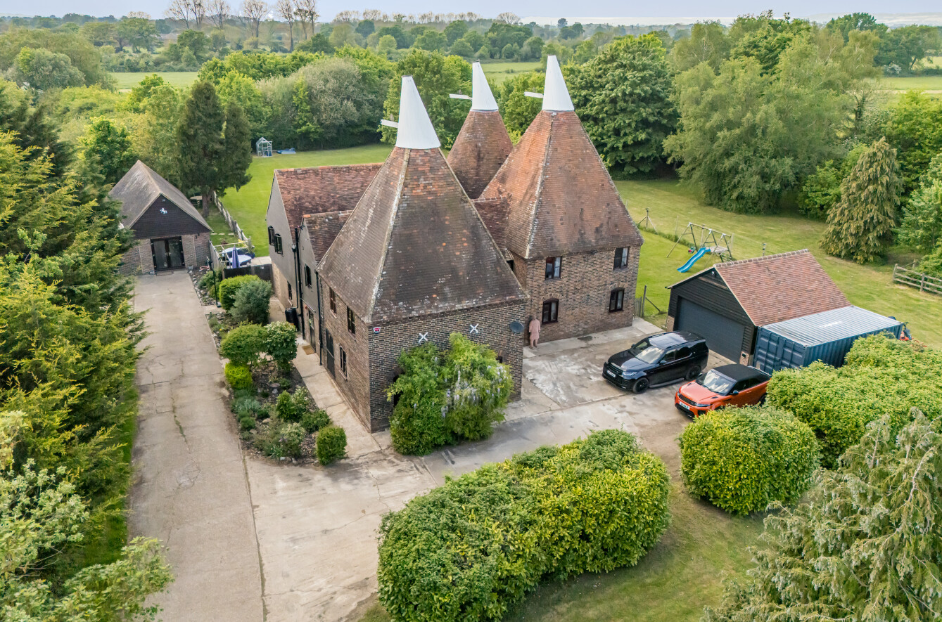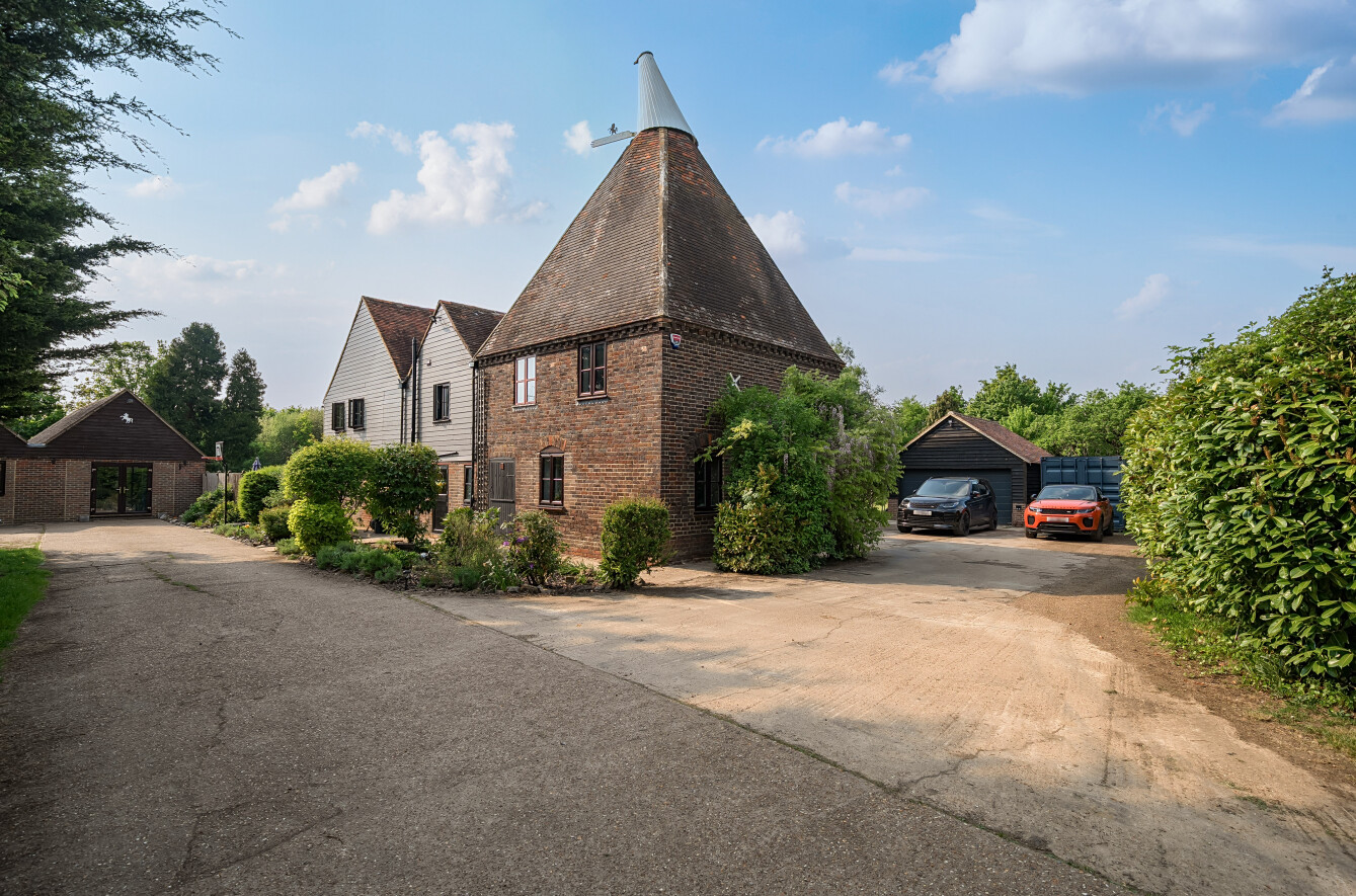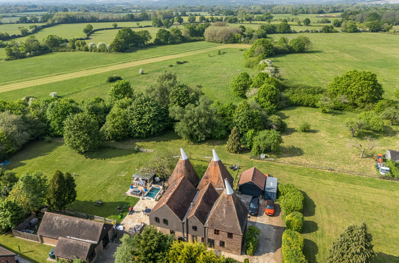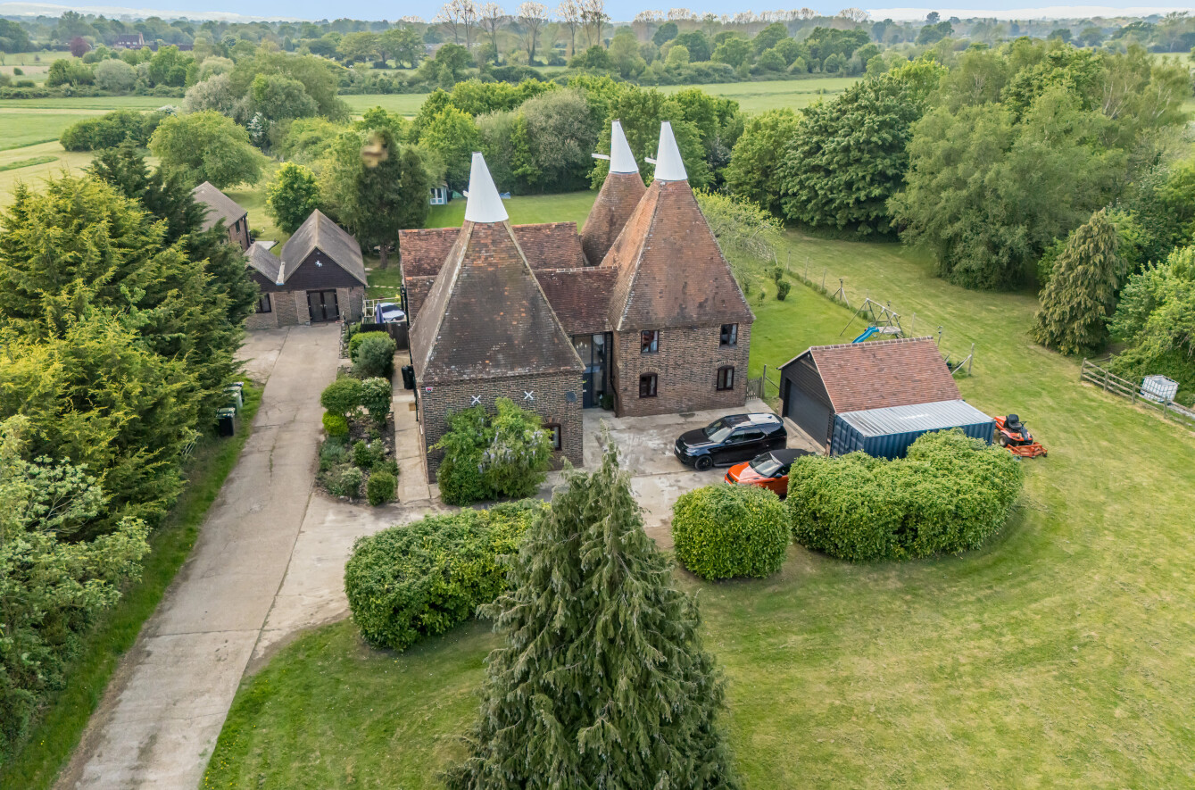Beautifully renovated to a high specification by the current owners is this 5 double bedroom detached oast house with two kilns and one roundel that is positioned within approximately 4.2 acres of idyllic Kent countryside. The oast offers substantial versatile living accommodation of just over 4,400 sq.ft and the property also benefits from a two bedroom detached annexe and a detached garage. Situated in a rural location between the pretty village of Yalding and Paddock Wood there are plenty of amenities available that include a mainline station offering links into London in under an hour.