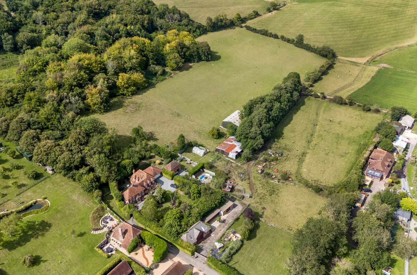 A detached Grade II Listed farmhouse with adaptable traditional and modern farm buildings with 45.5 acres / 18.41 hectares of arable pasture and woodland in a favoured location in the popular Elham Valley.