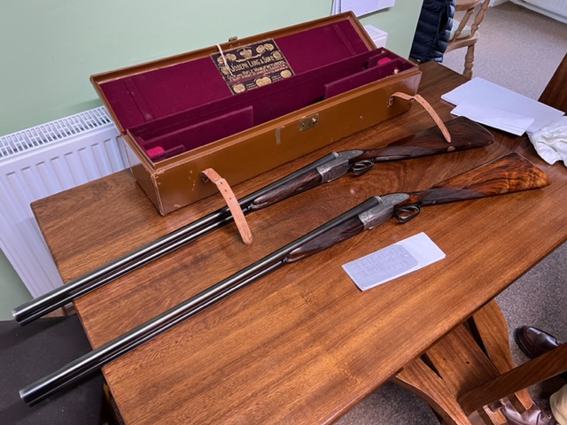 Up for sale are a pair of Laing & Hussey Imperial Side Lock Ejecting Old English Guns. They are a matched pair suitable for steel shot and set for central vision. Some of the proceeds of sale are to be donated to the RABI Charity.