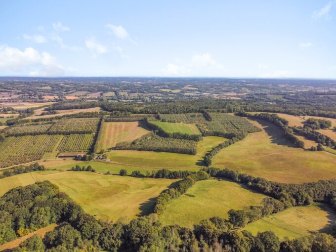 A pretty block of agricultural land and broadleaf woodland in…